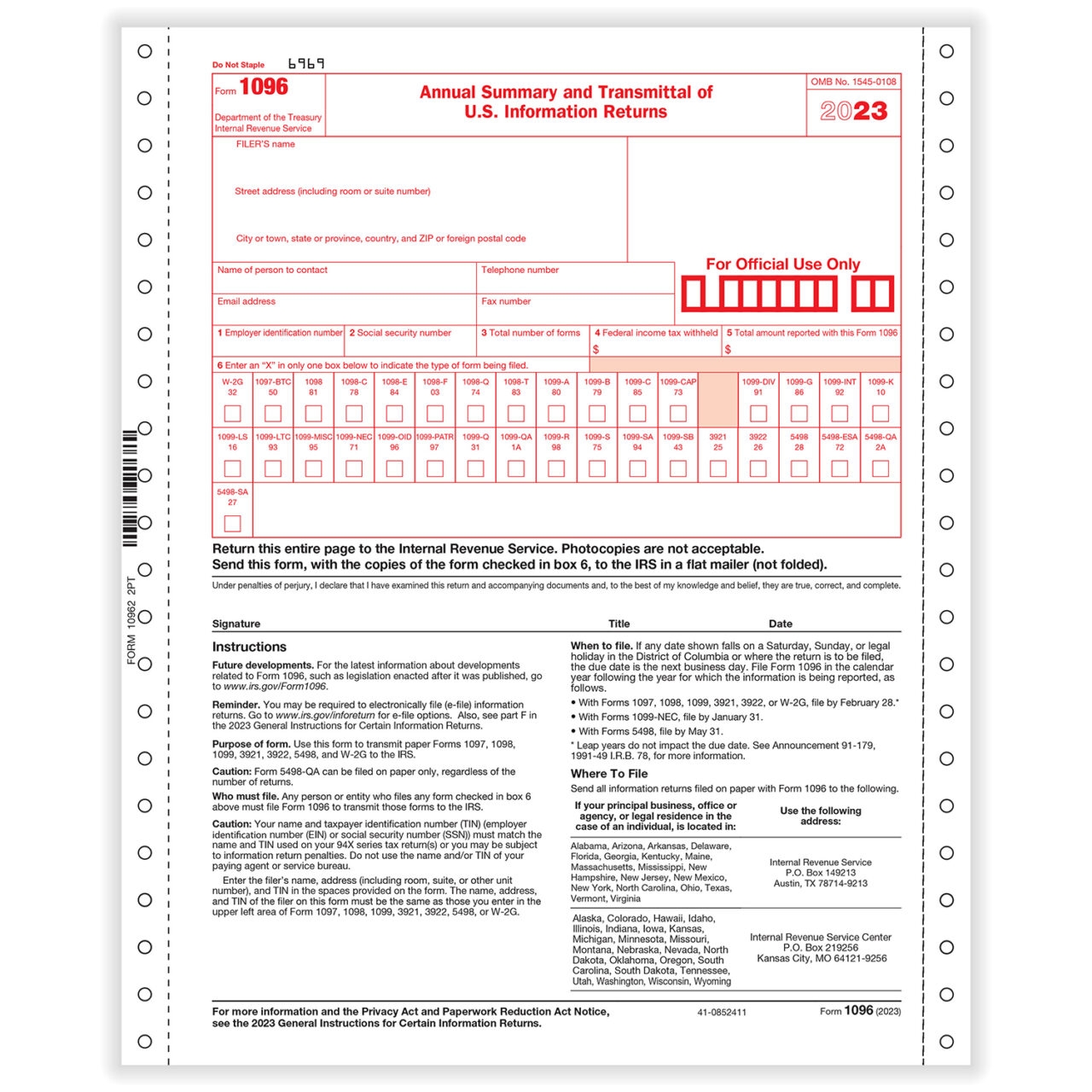 1096 2 Part 1 Wide Annual Summary Transmittal Continuous 1096 Forms Fulfillment