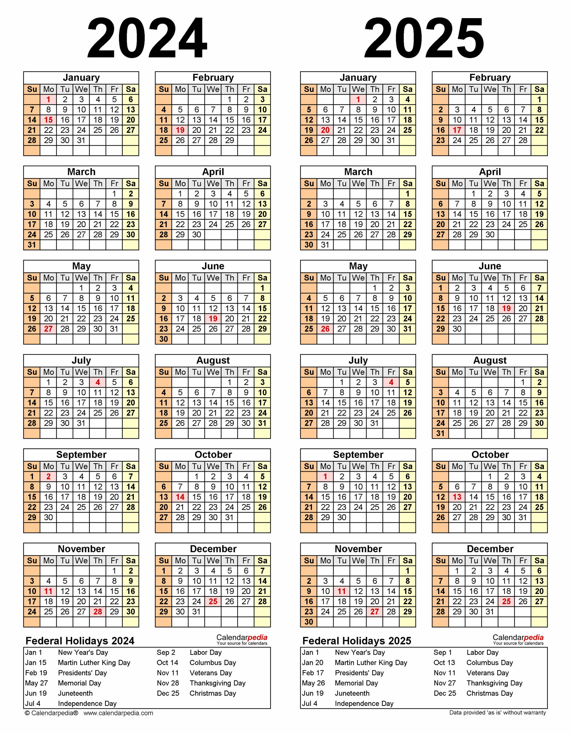 2024 2025 Two Year Calendar Free Printable PDF Templates