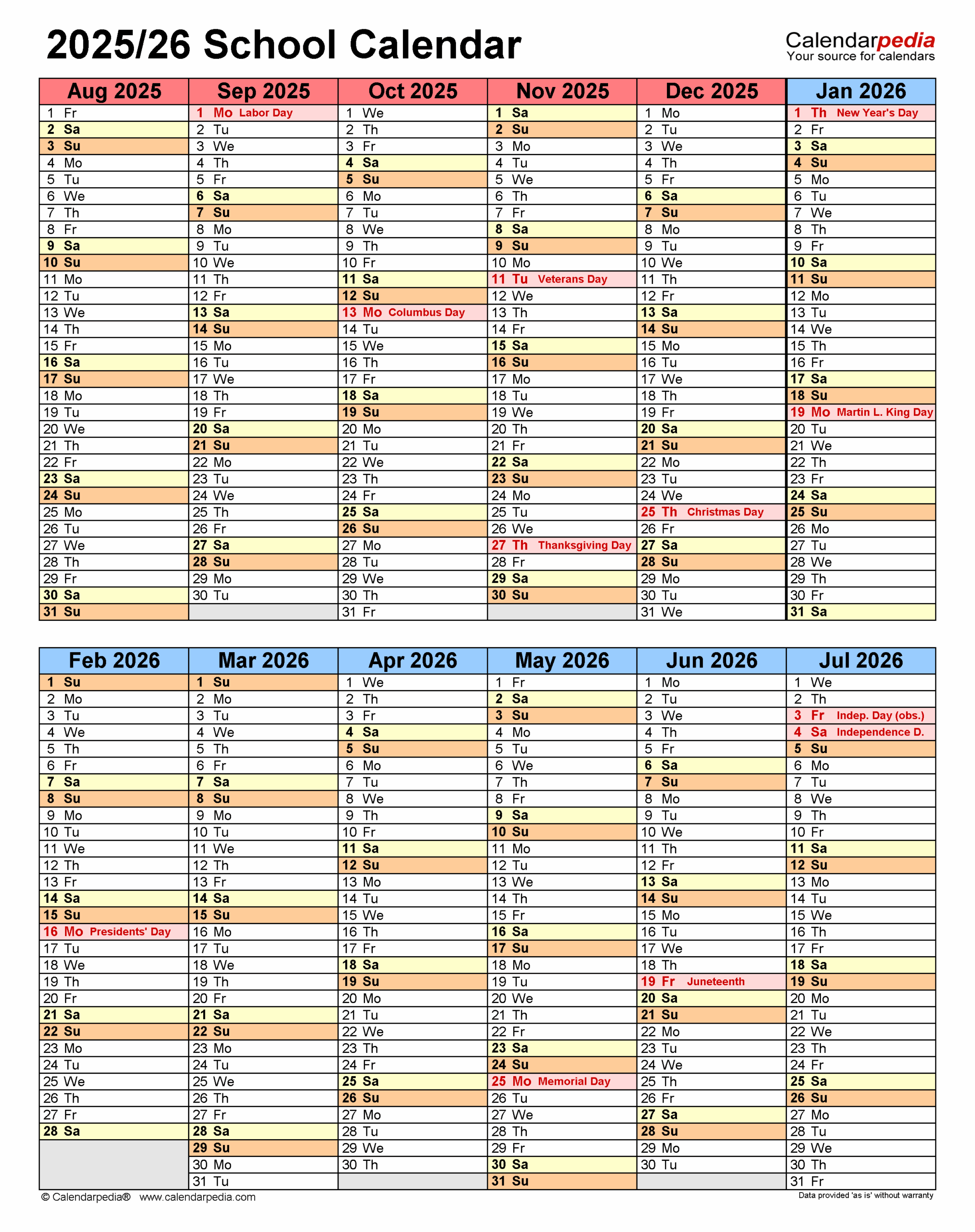 School Calendars 2025 2026 Free Printable PDF Templates