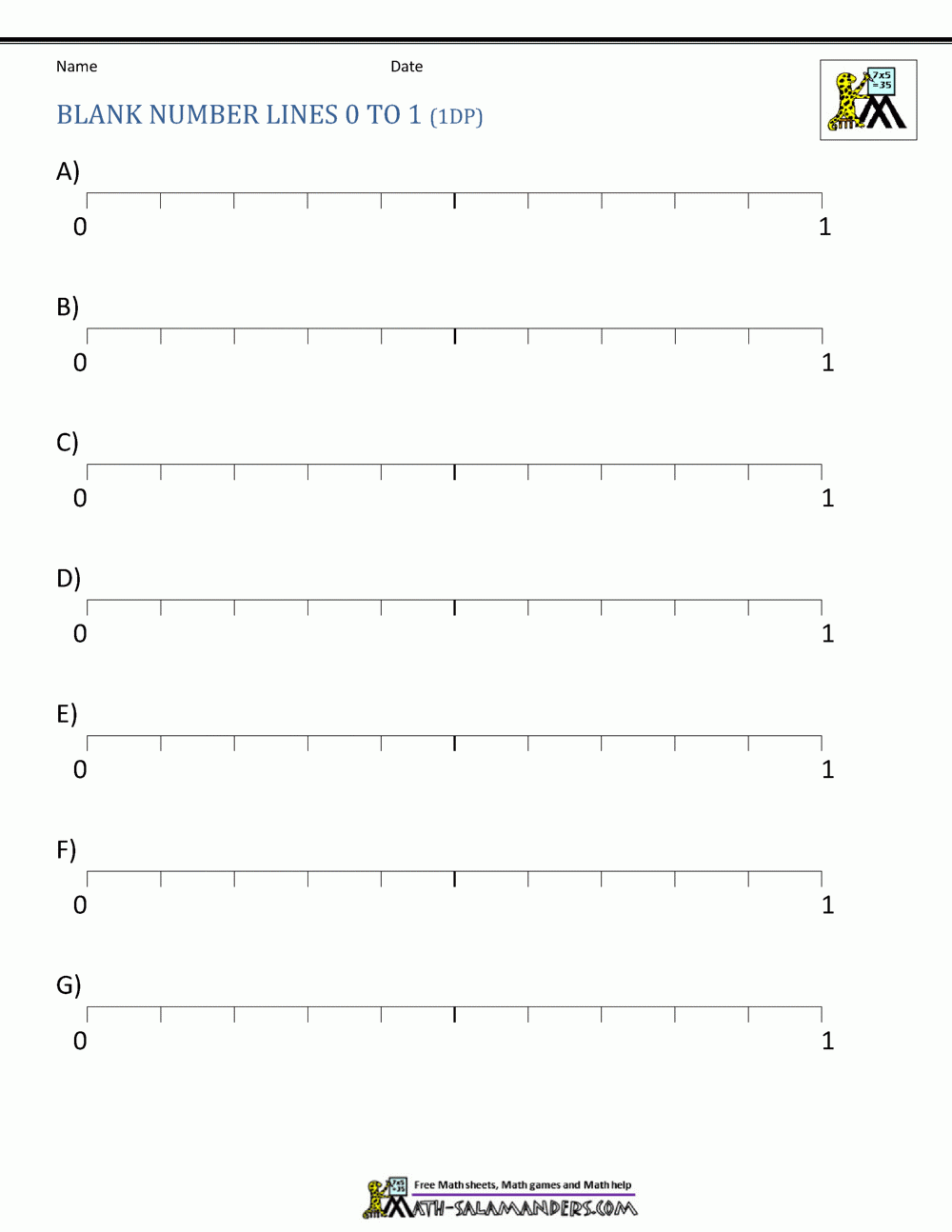Blank Decimal Number Line Printable