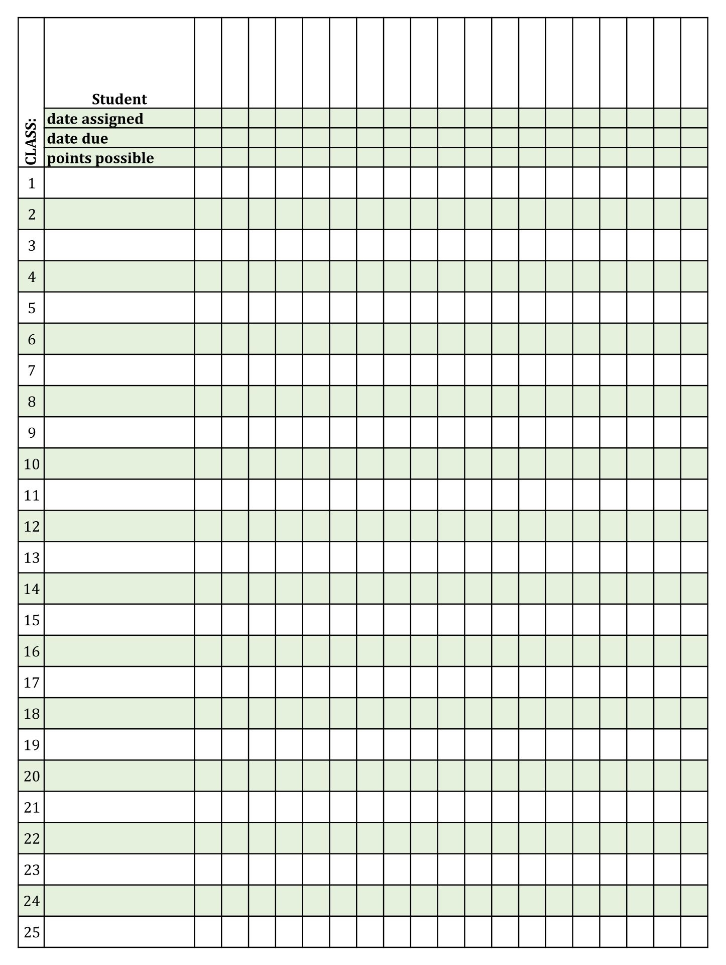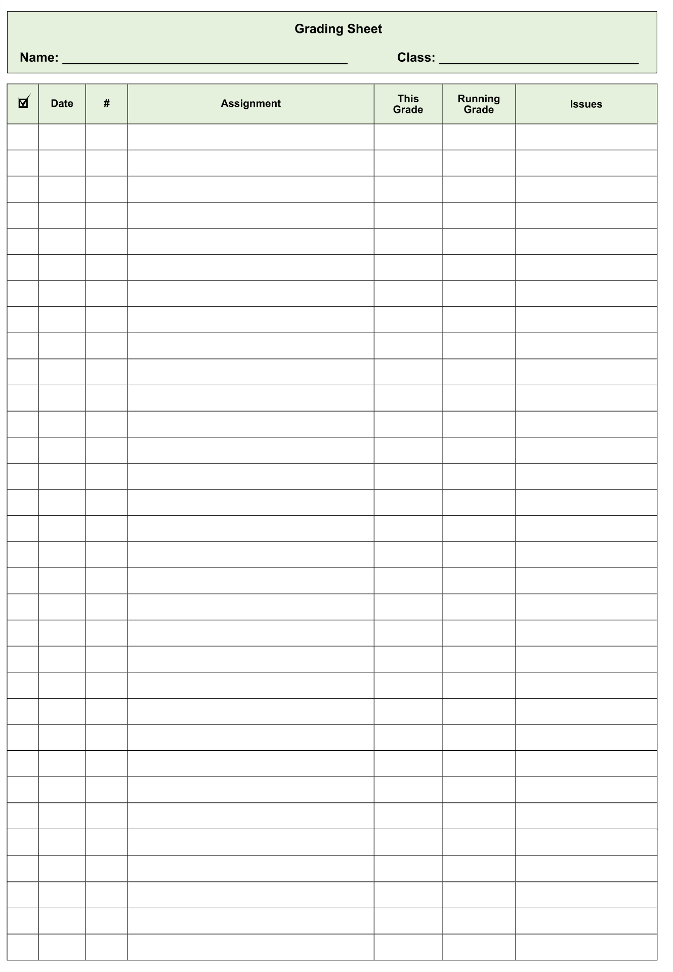 Blank Free Printable Grade Sheet