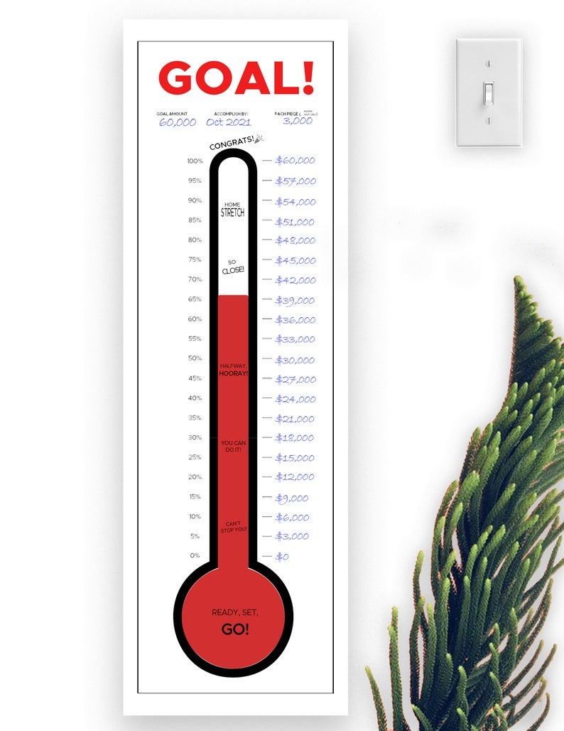 GIANT GOAL Thermometer Chart Tracker Download Print Poster Savings Fundraising Money Budget Plan Fund Etsy