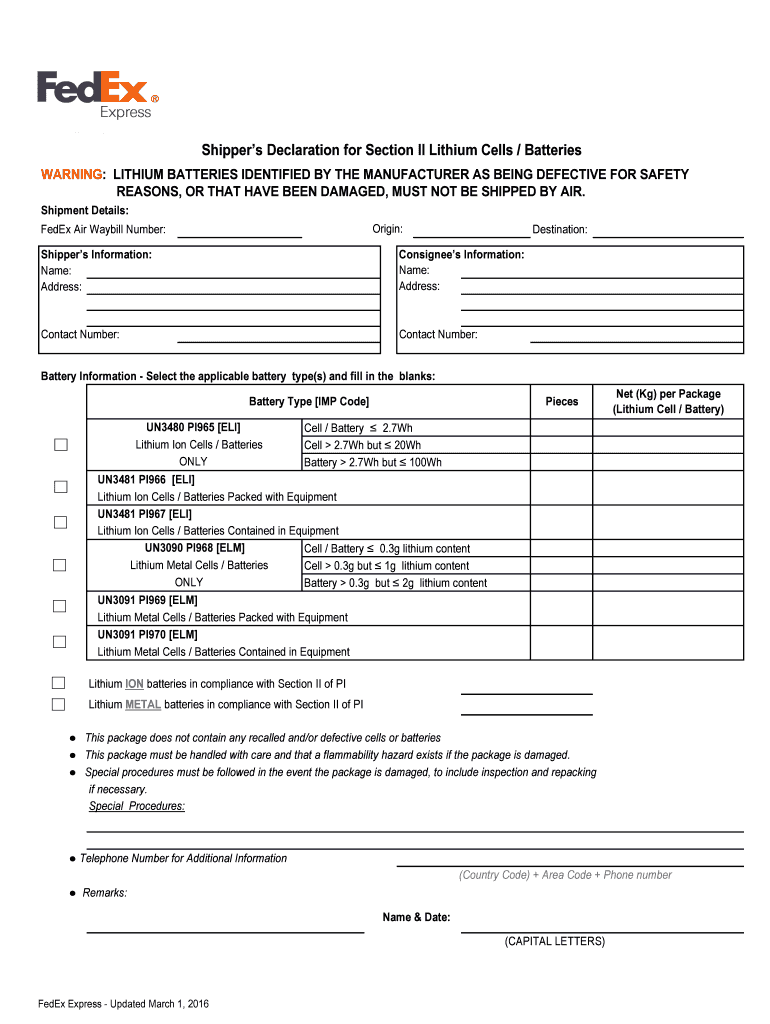 Fedex Shippers Lithium Fill Online Printable Fillable Blank PdfFiller