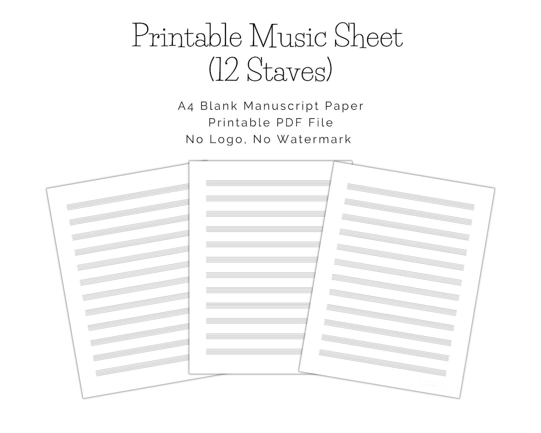 12 Staves Blank Sheet Music Manuscript Paper Printable A4 PDF Instant Digital Download Etsy
