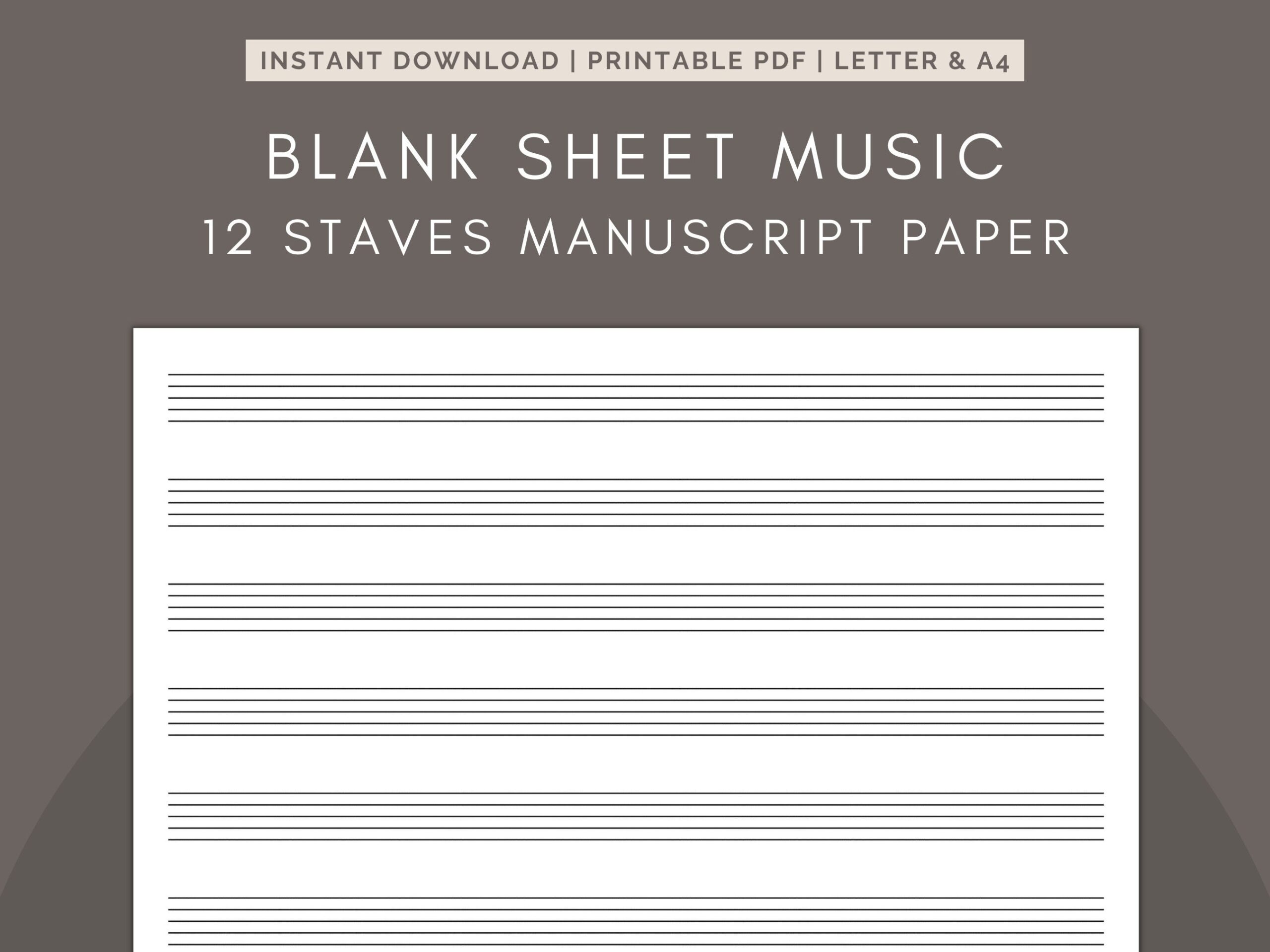 Printable Blank Sheet Music Manuscript Paper 12 Stave Printable PDF Instant Download Piano Staff Paper A4 US Letter Etsy
