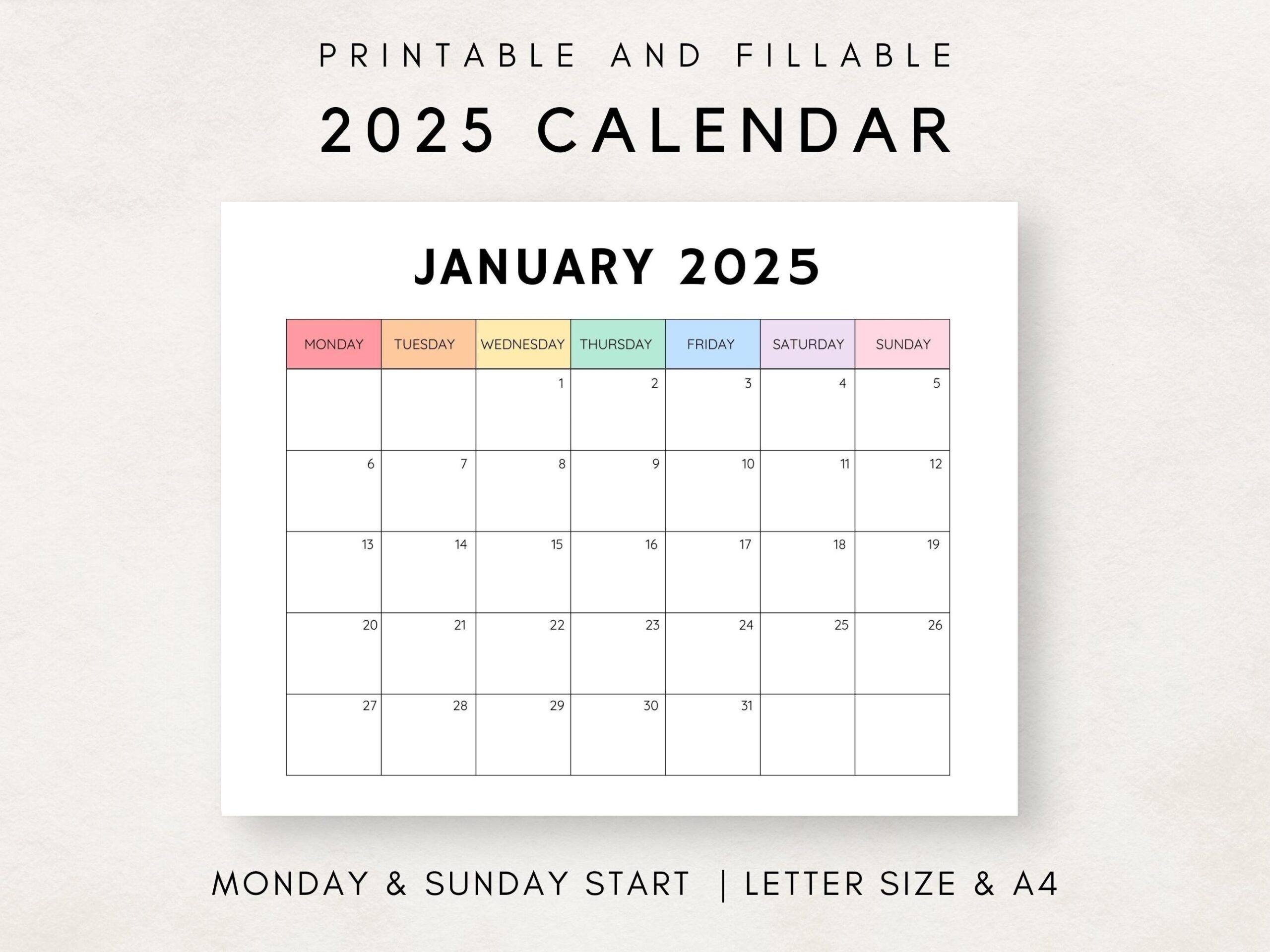 Free 2025 Monthly Calendar Template January To December