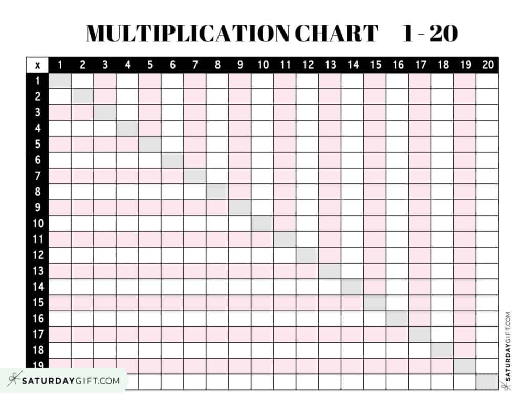 Multiplication Chart 1 To 20 Cute Free Printables SaturdayGift