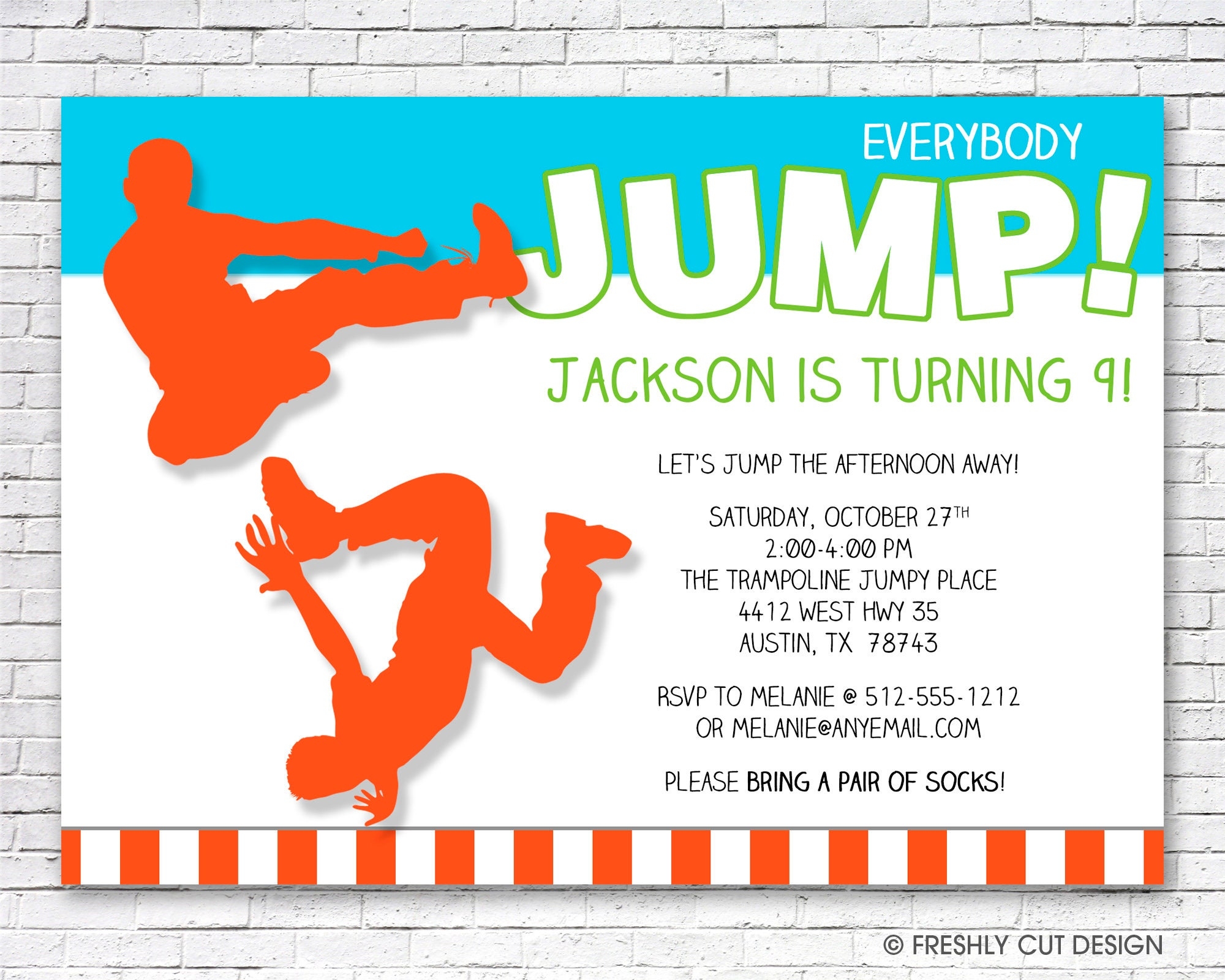 Jump Invitation Printable Or Printed With FREE SHIPPING Jump Bounce Trampoline Birthday JUMP Flags Collection Etsy