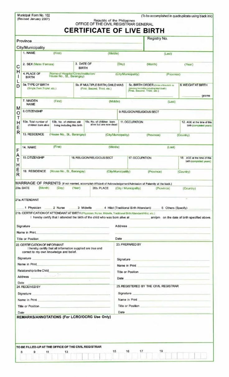 Blank Printable Birth Certificate Form