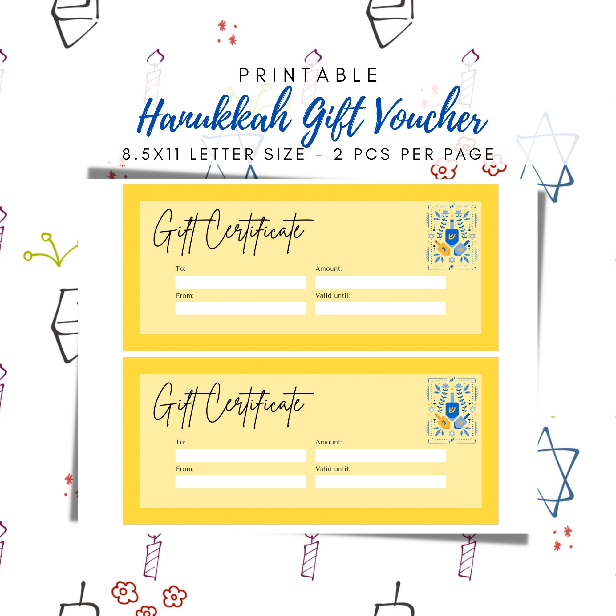 BEST VALUE Printable Hanukkah Gift Certificate instant Download Gift Voucher Gift Card Hanukkah Gift Coupon Chanukah Jewish Holiday Etsy