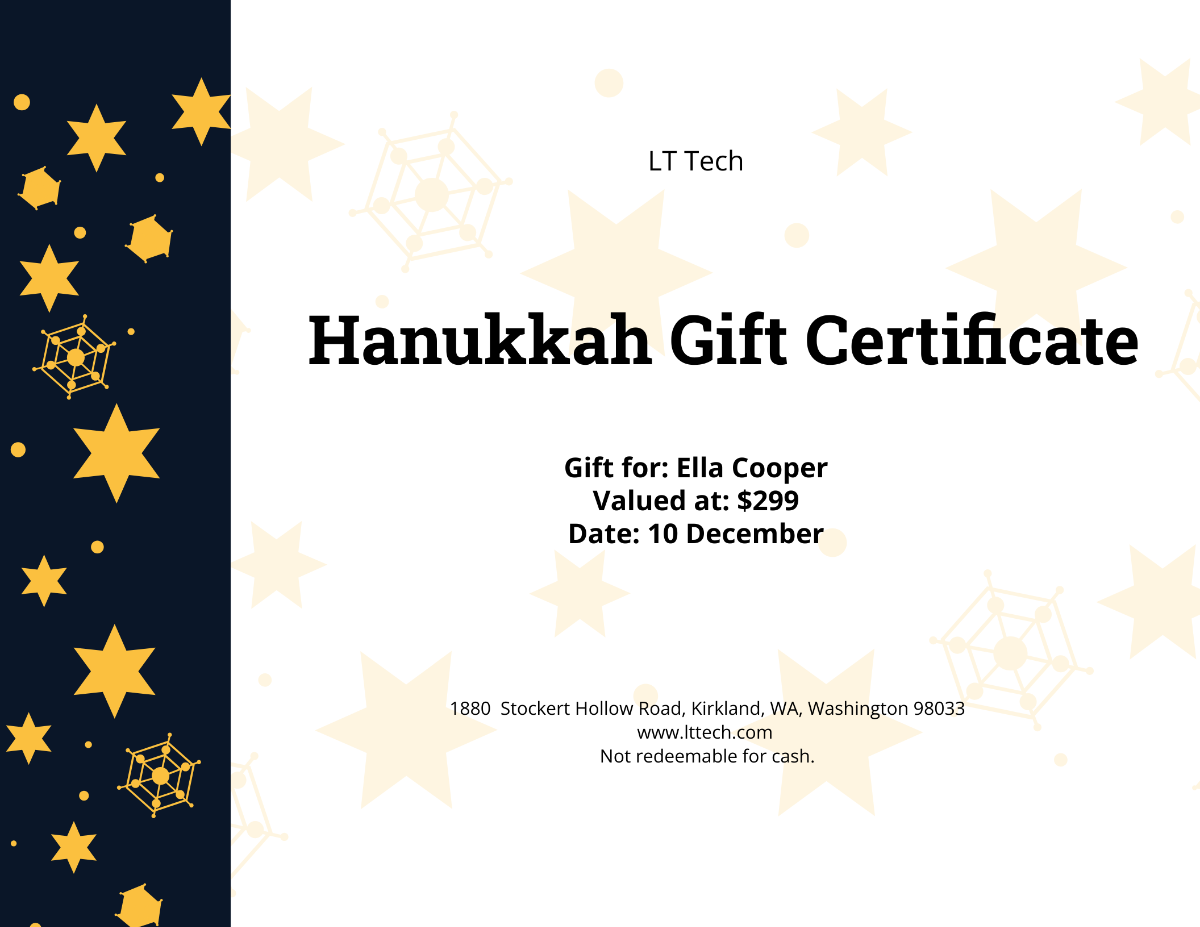 Free Hanukkah Gift Certificate Template To Edit Online