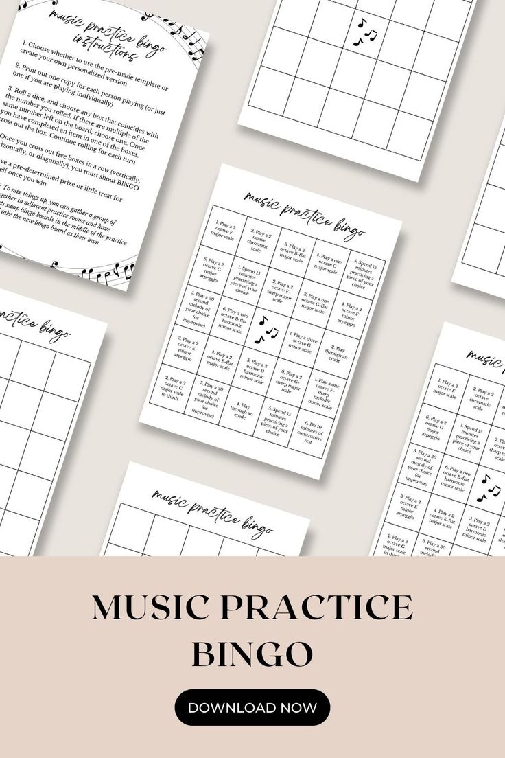 Music Practice Bingo Printable Bingo Game With Instructions And Pre Filled And Blank Boards