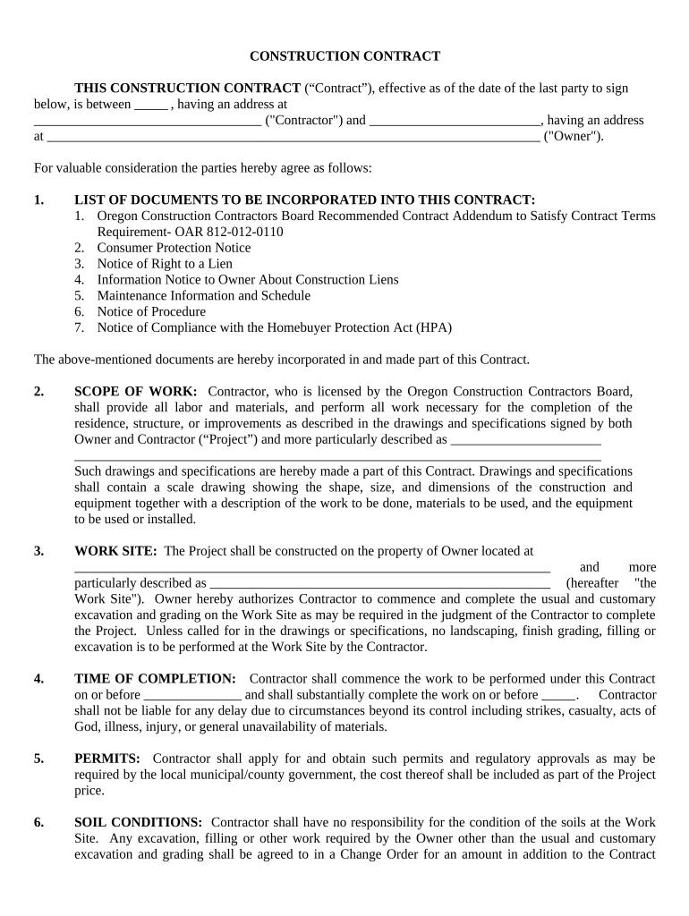 Oregon Construction Contract Template Pre built Template AirSlate SignNow