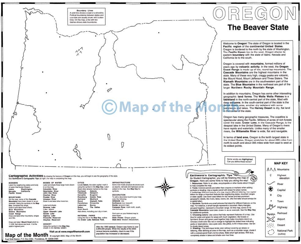 Oregon Map Blank Outline Map 16 By 20 Inches Activities Included