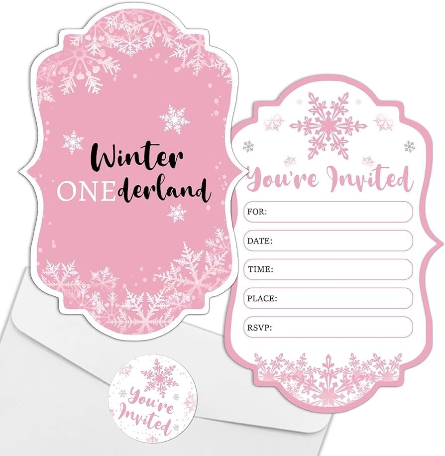 Amazon REWIDPARTY Winter Onederland Party Invitations With Envelopes Stickers Set Of 15 Pink Snowflake Shaped Fill in Invitations Girl 1st Birthday Party Invites Winter Wonderland Holiday Party Supplies Home Kitchen