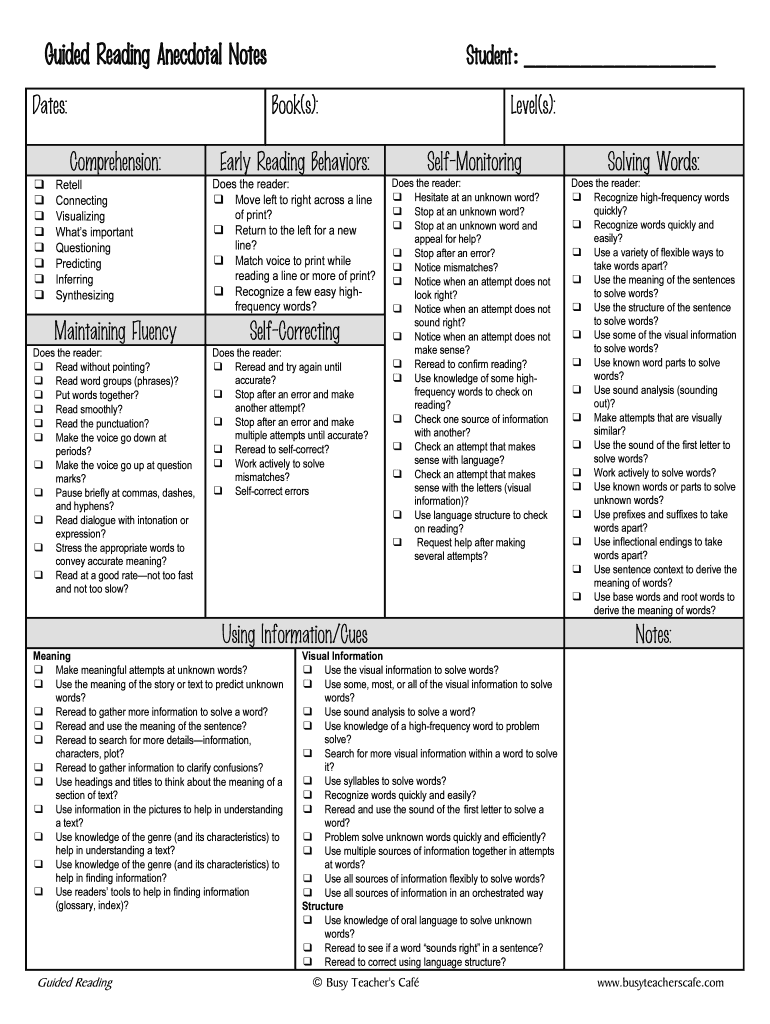 Guided Reading Anecdotal Notes Template Fill Online Printable Fillable Blank PdfFiller
