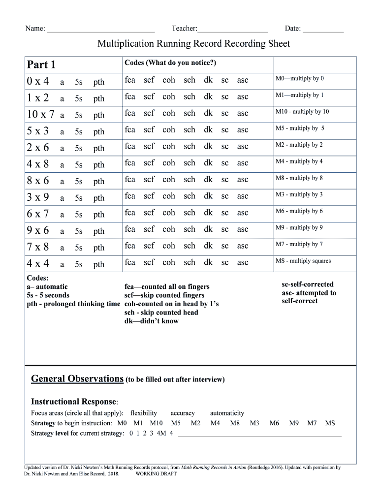 Multiplication Running Record Fill Online Printable Fillable Blank PdfFiller