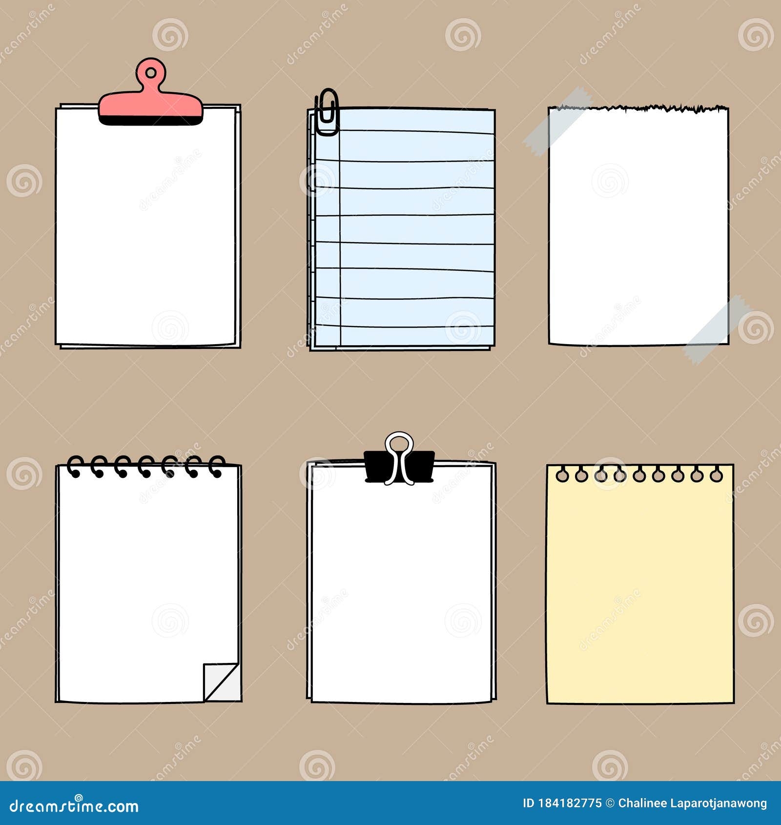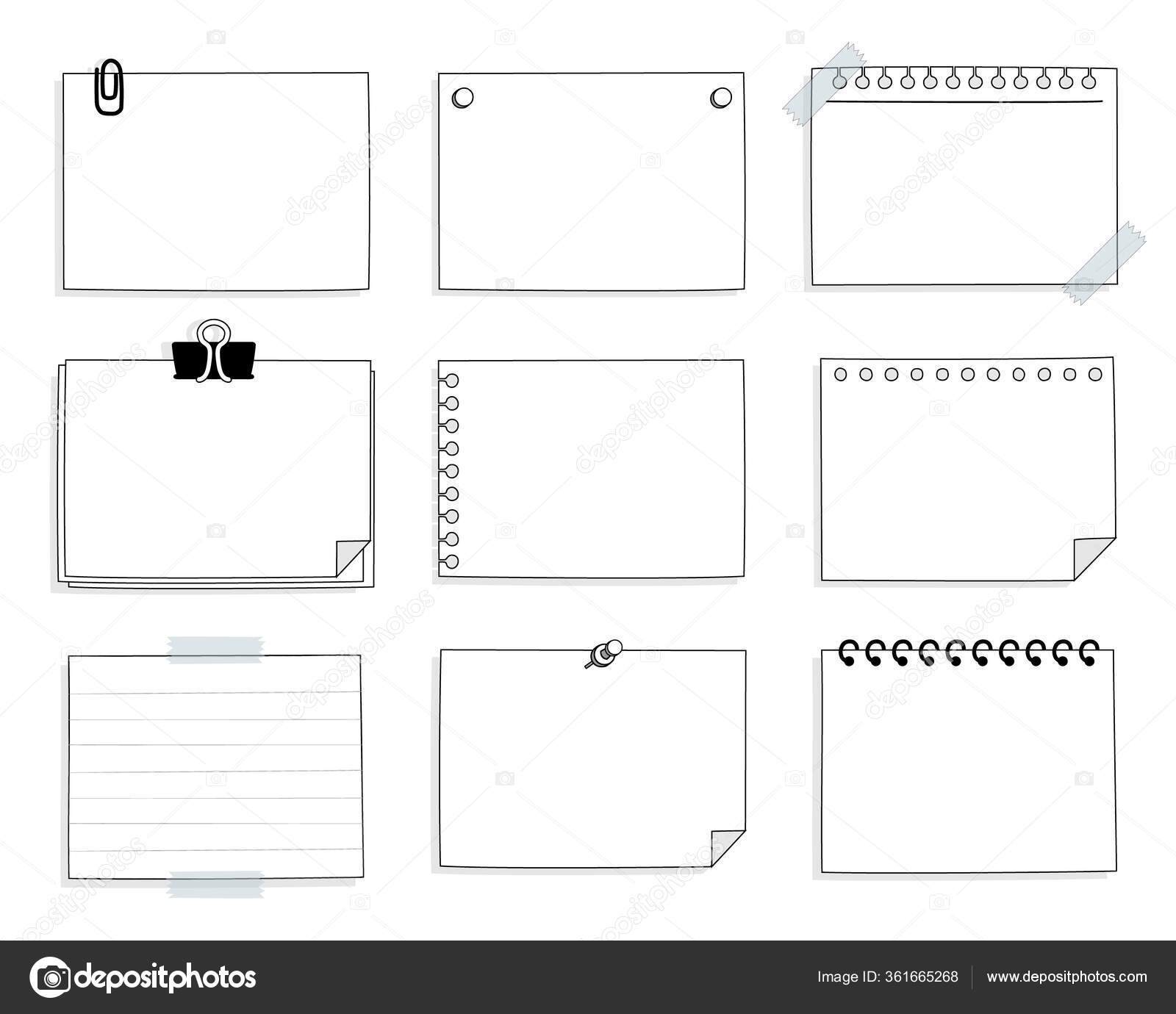 Set Of Cute Hand Drawn Blank Paper Sticky Note Pad With Tape And Clip Template Text Box Stock Vector Illustration Of Page List 184182775