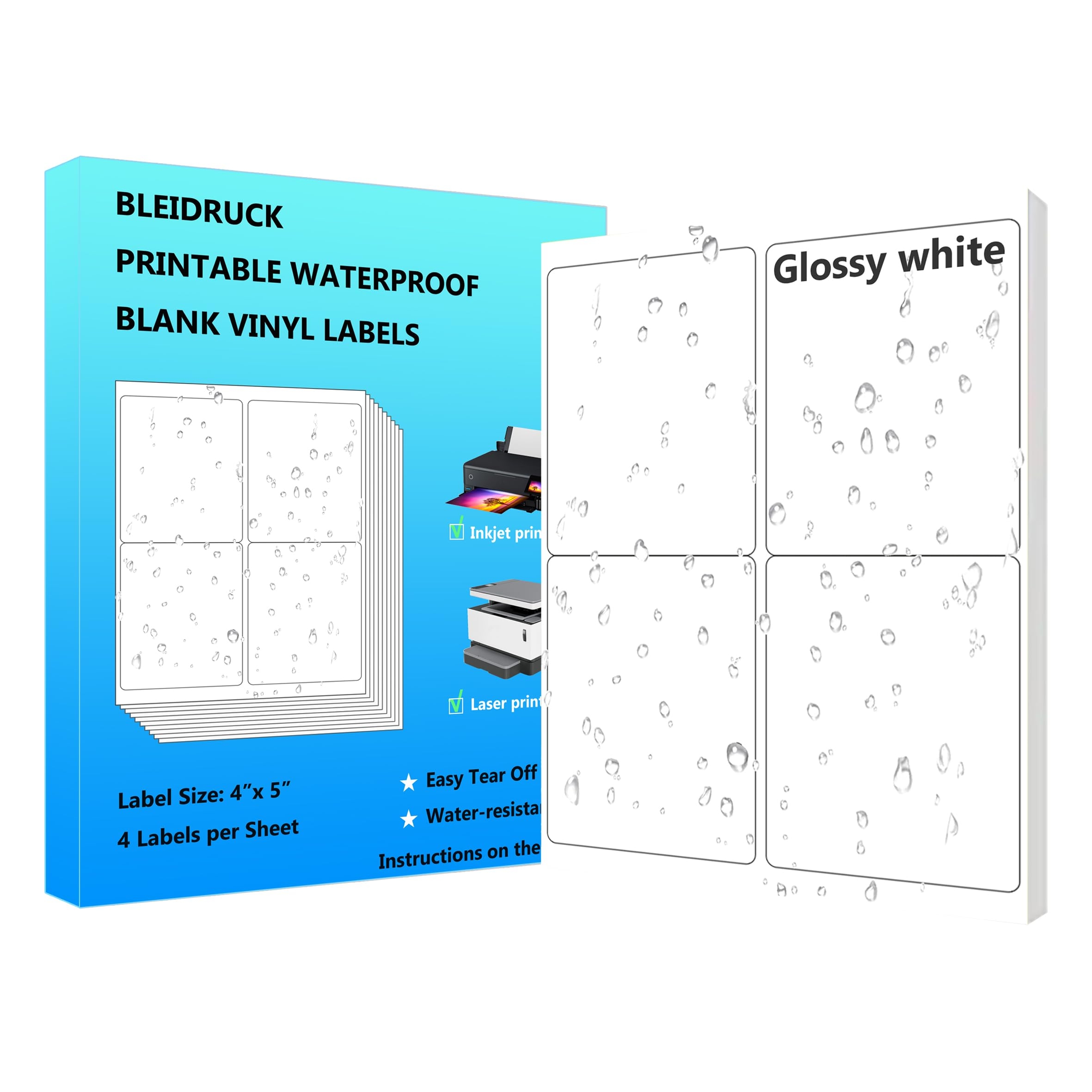 Amazon Glossy White Waterproof Sticker Shipping Labels 4 X 5 4 Up Vinyl Address Lalebs For Laser Or Inkjet Printers 20 Sheets 80 Total Permanent Adhesive Labels Office Products
