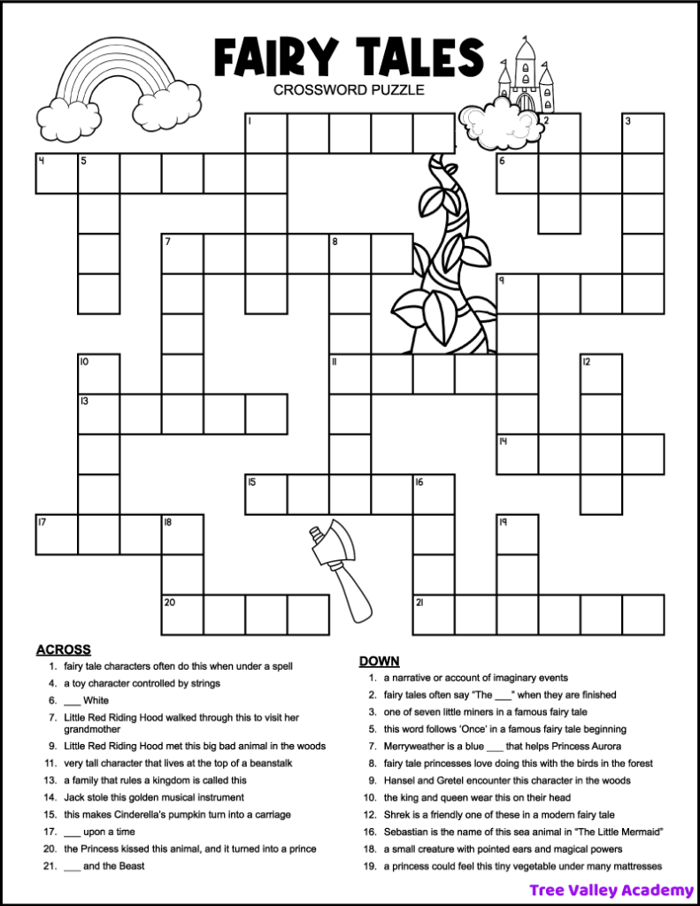 Fairy Tale Crossword Puzzles For Kids Tree Valley Academy