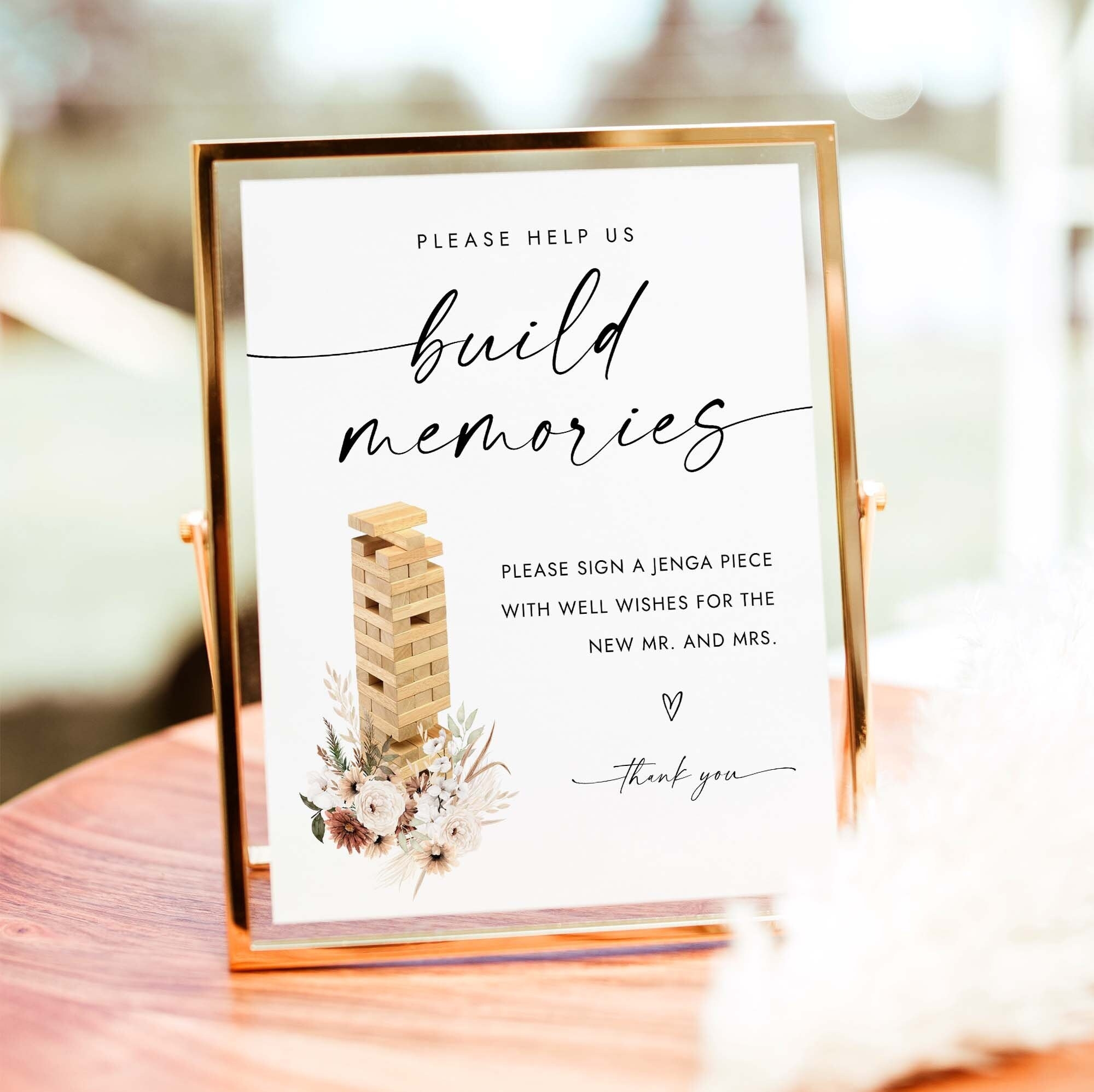 Help Us Build Memories Sign Floral Wedding Guestbook Wedding Jenga Guestbook Sign Printable Wedding Jenga Sign Leave Your Wishes Sign W4 S1 Etsy