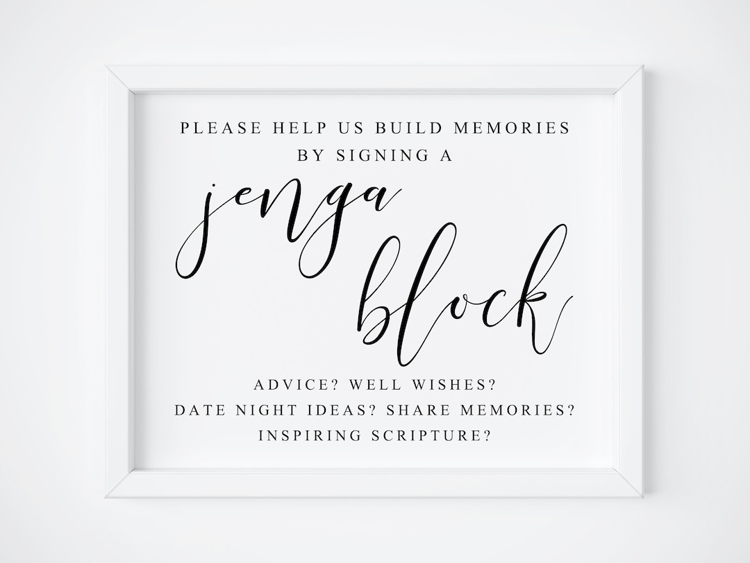 To get started, simply download and print out the free Jenga piece printable template. You can customize the pieces with names, dates, messages, or anything else that holds significance to you and your guests. Then, cut out the pieces and have everyone sign one before stacking them up to play.