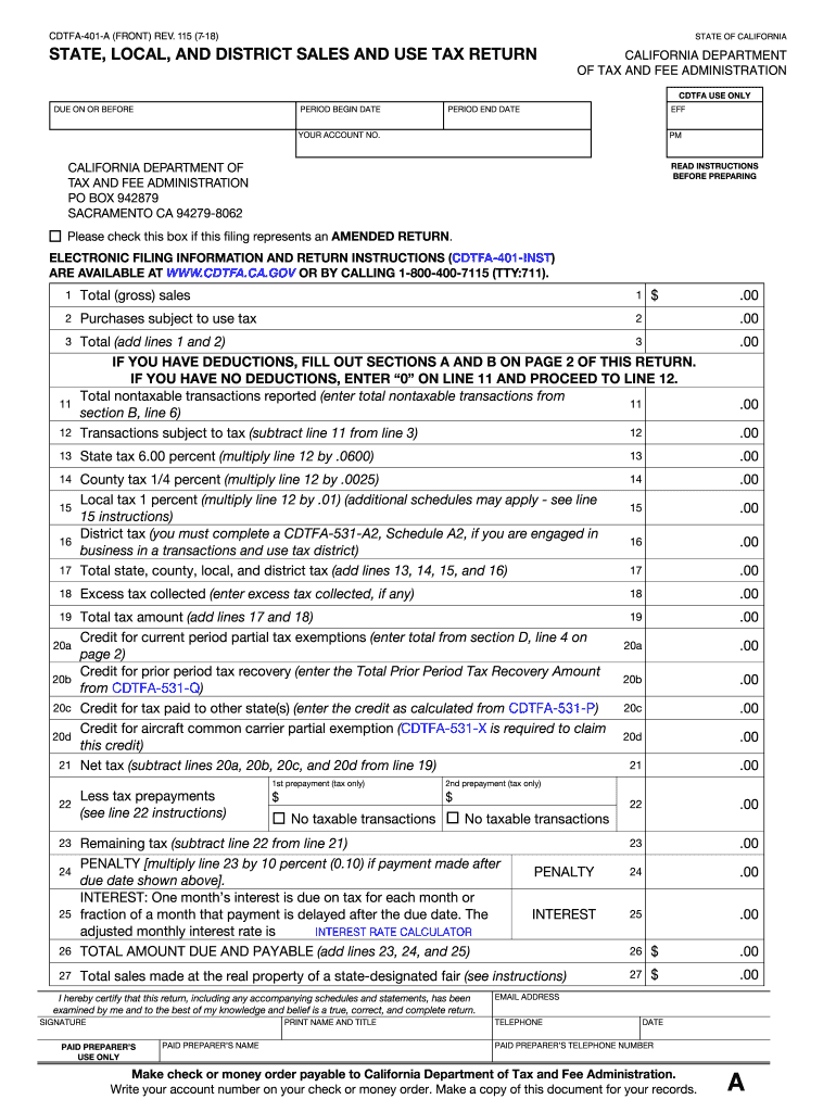2018 2025 CA CDTFA 401 A Formerly BOE 401 A2 Fill Online Printable Fillable Blank PdfFiller