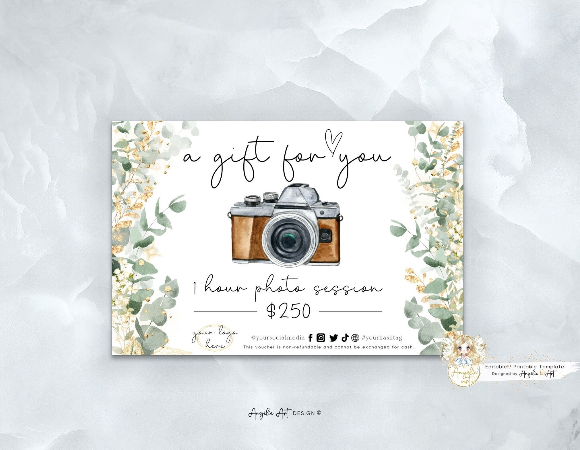 Editable Photography Gift Certificate Template With Watercolor Camera Strawberry Kit