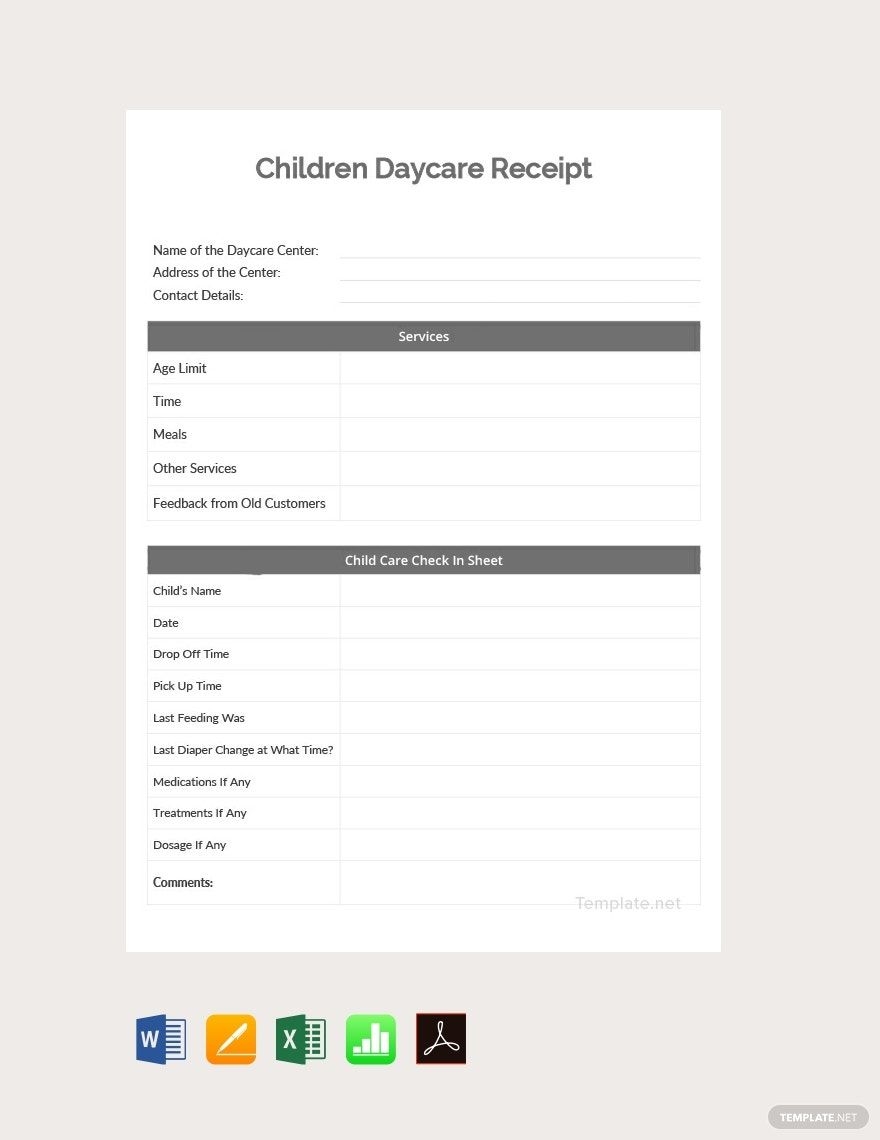 Free Daycare Receipt Templates Editable And Printable