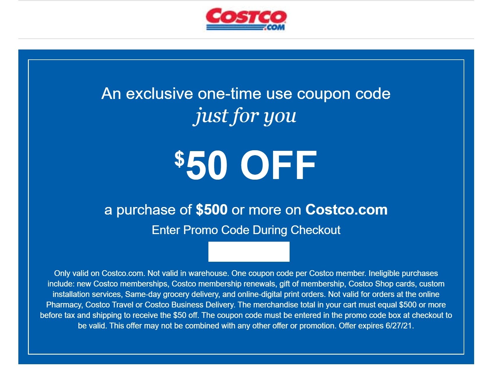 EXPIRED Costco Sending Targeted 50 Off 500 Coupons