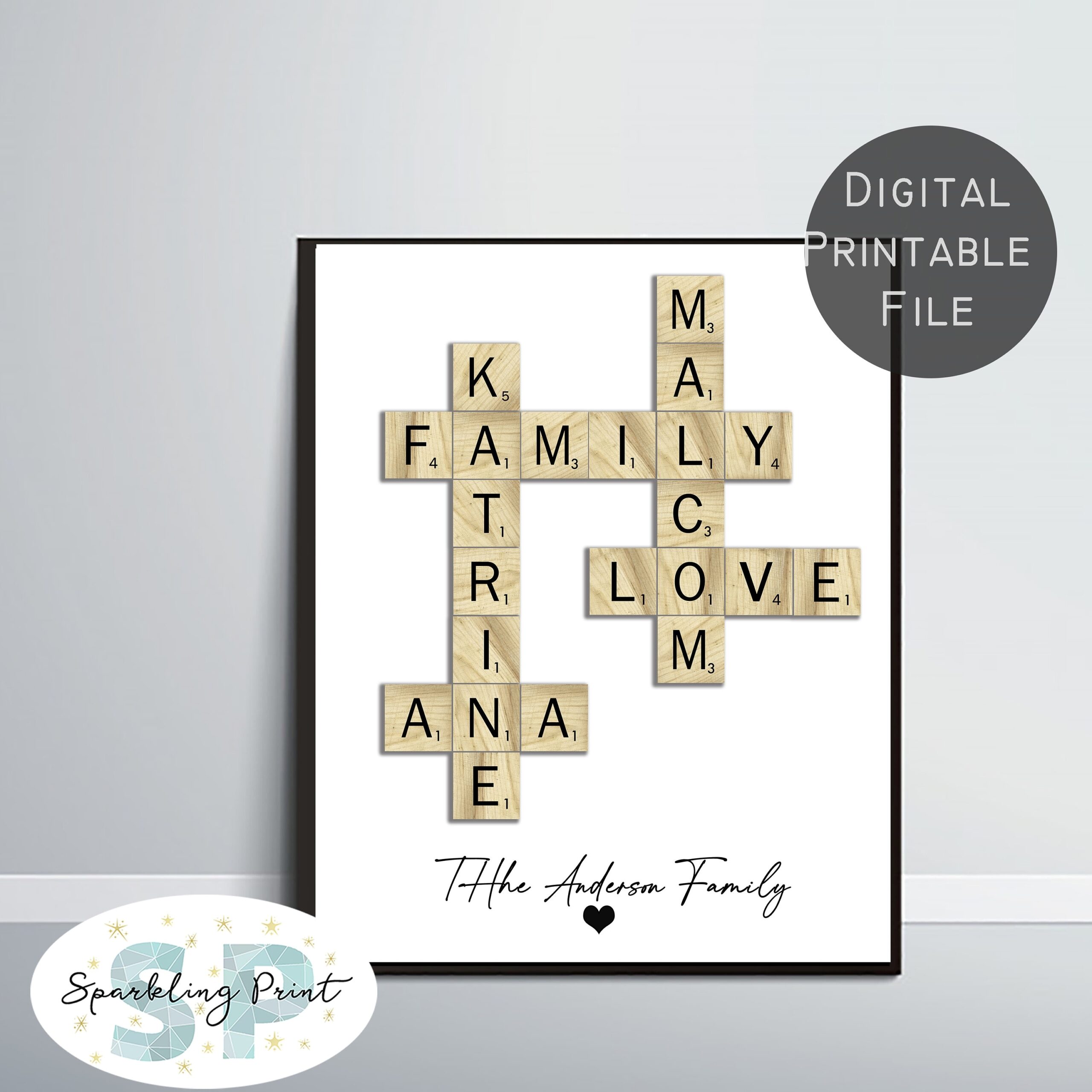 Personalized Family Name Sign Crossword Scrabble Print Personalize Birthday Gift For Her Anniversary Gift For Wife Christmas Gift Etsy