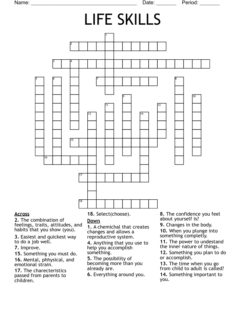 Life Skills Crossword Puzzle WordMint