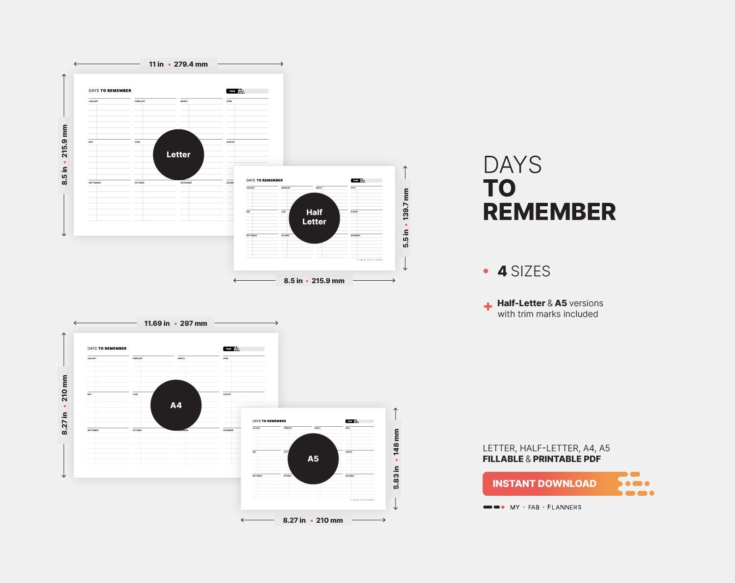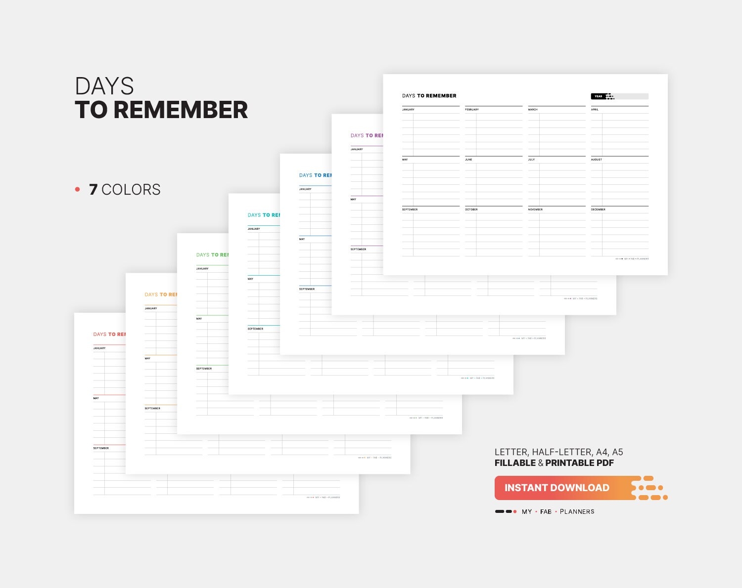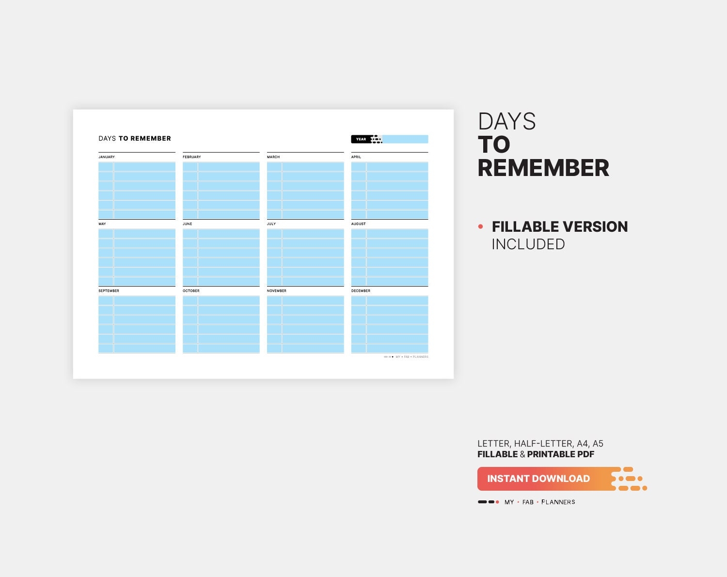 Days To Remember Board Important Dates Fillable Yearly Planner Birthday Date Calendar Reminder Printable Letter HL A4 A5 PDF Template Etsy