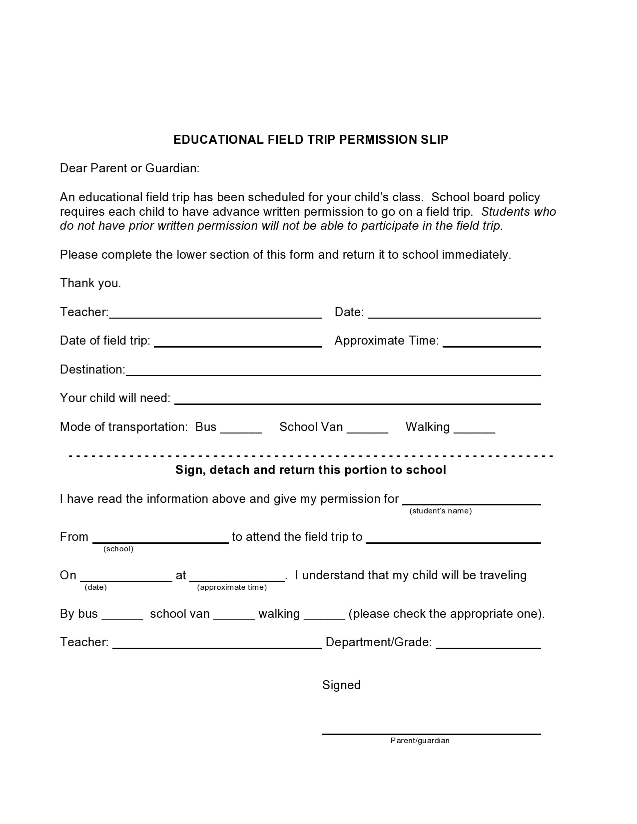 Field Trip Blank Printable Form: Why You Need It