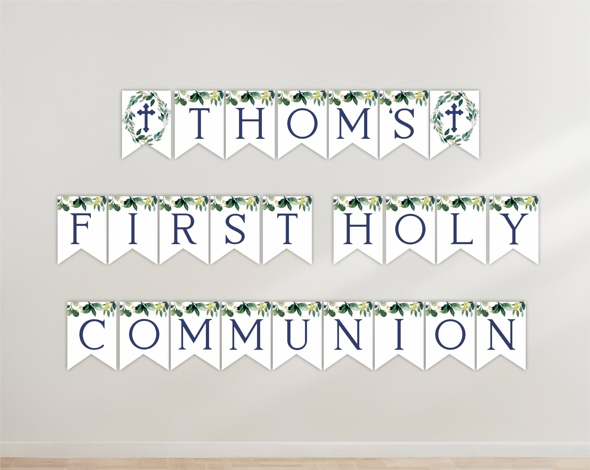 Banner First Holy Communion Boy And Girl First Communion Decorations Communion Decoration Printable Banner Geenery FC04 Etsy