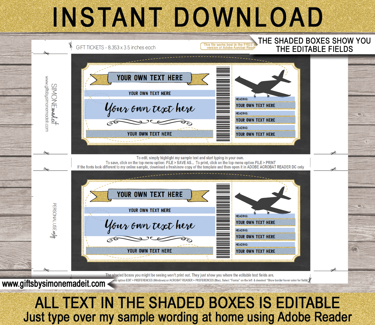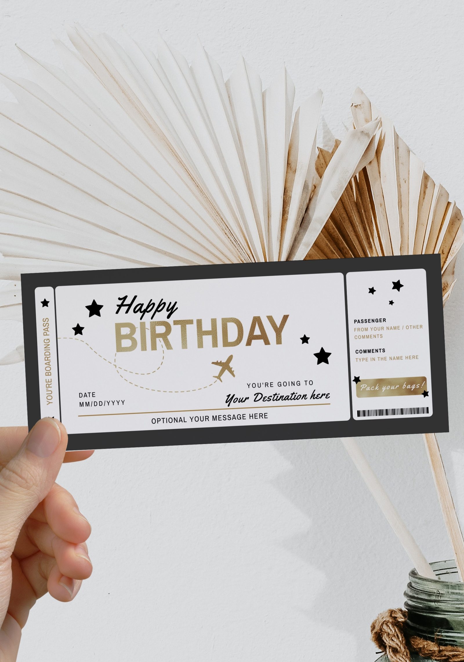 Boarding Pass Template Printable Plane Ticket Creative Personalized Gifts Weekend Getaway Voucher Gift Certificate Template Golden Ticket