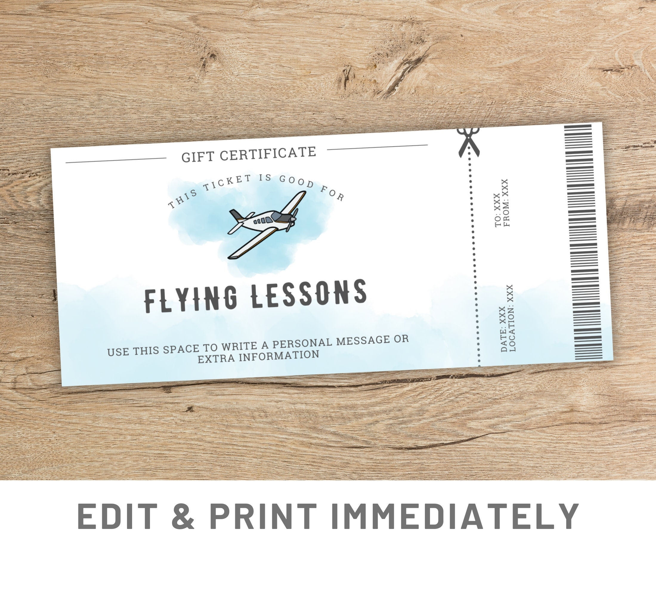 Custom Flying Lessons Voucher Flight Gift Coupon Template Canva Pilot Training Voucher Gift Card Flight School Printable Last Minute Gift Etsy