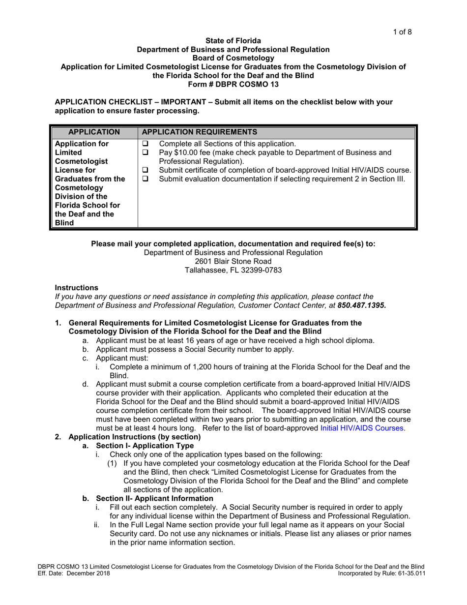 Form DBPR COSMO13 Fill Out Sign Online And Download Printable PDF Florida Templateroller