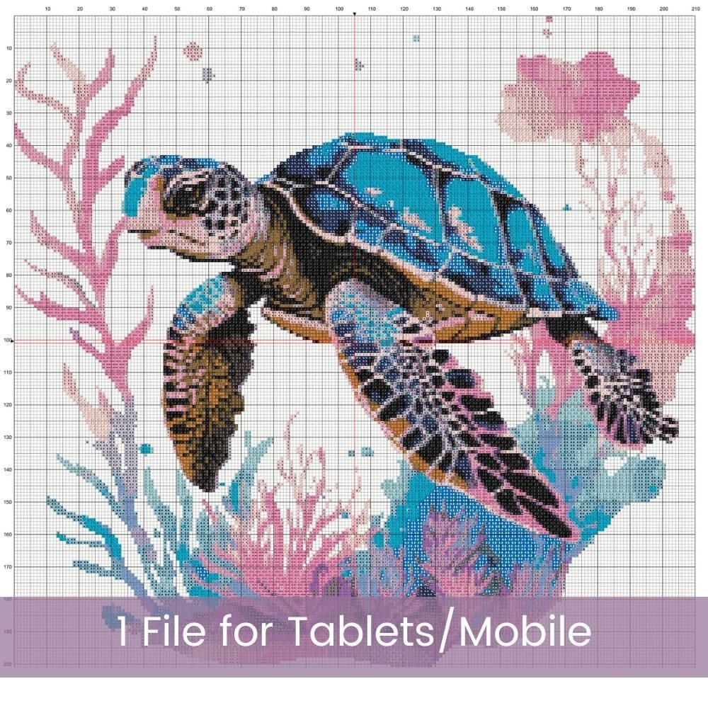 Sea Turtle Cross Stitch Chart Pattern PDF Instant Download No 035 C2C Graph