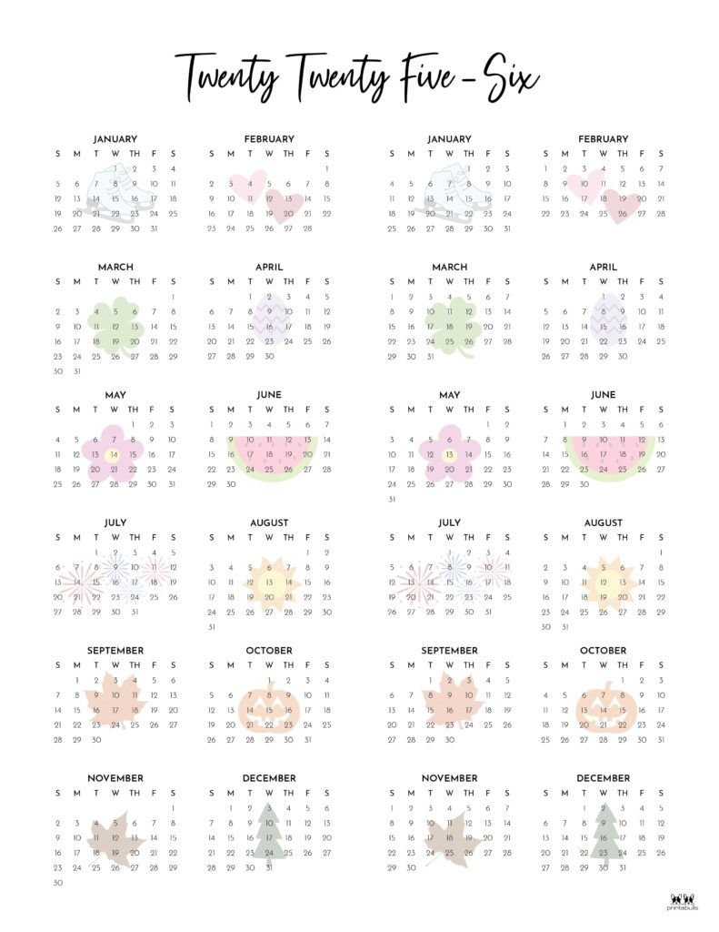2025 2026 Two Year Calendars 10 FREE Cals Printabulls