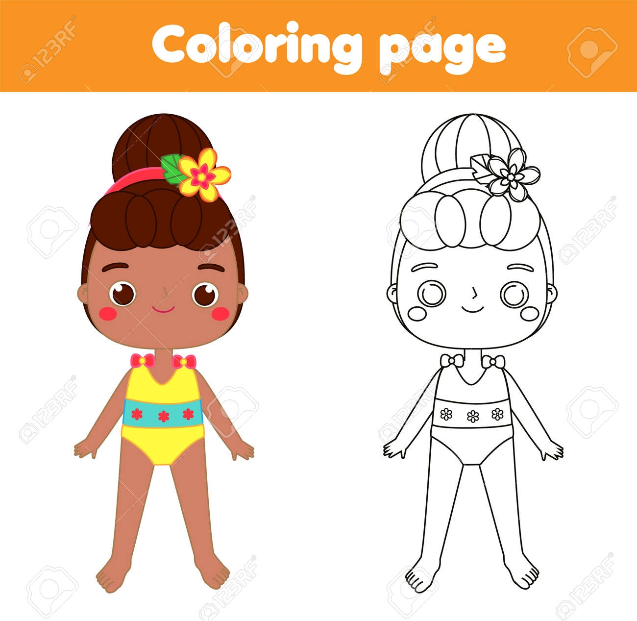 Coloring Page With African American Girl In Swimsuit Drawing Kids Activity Printable Fun For Toddlers And Children Summer Holidays Theme Royalty Free SVG Cliparts Vectors And Stock Illustration Image 185889118
