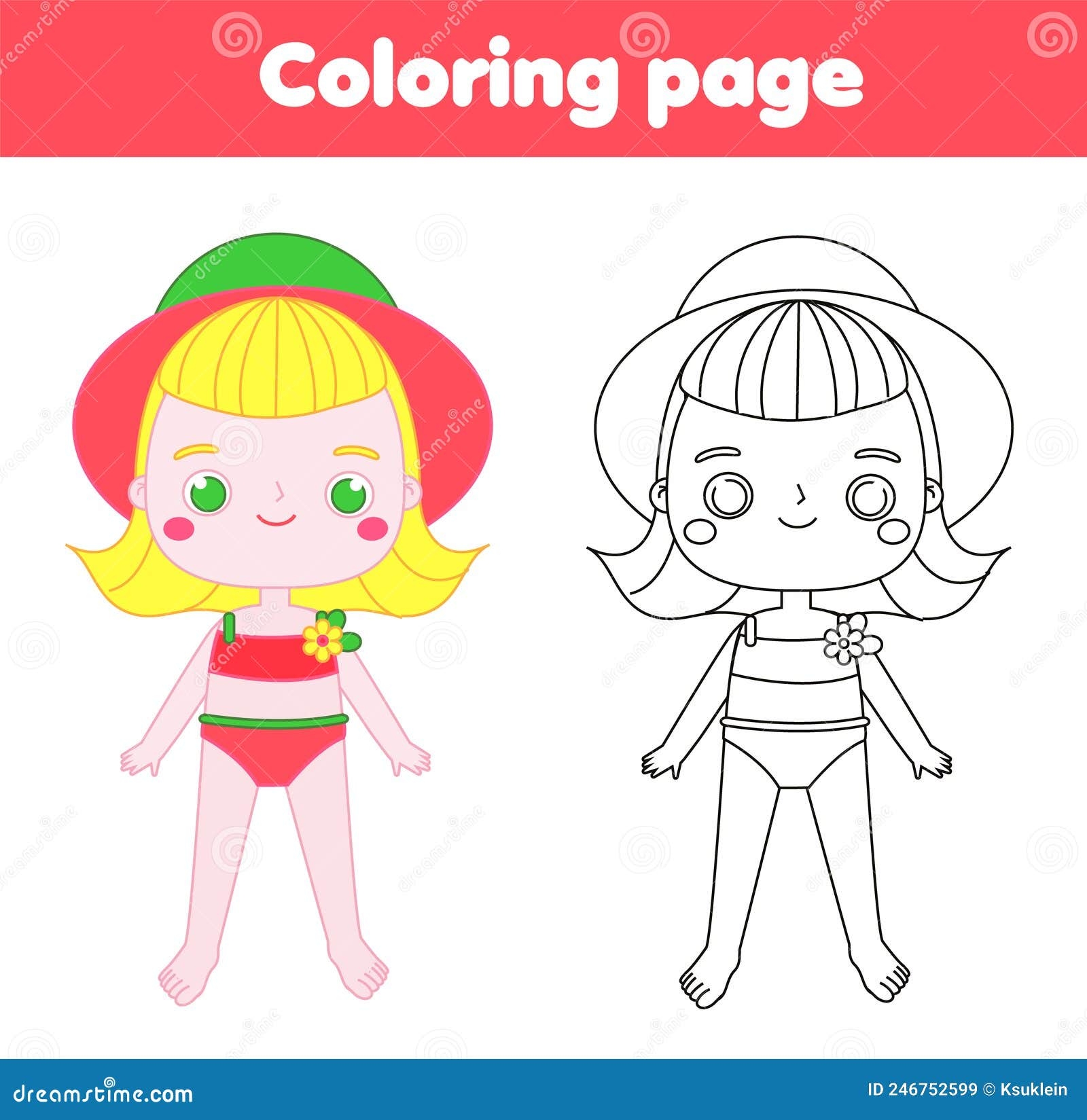 Coloring Page With Cartoon Girl In Swimsuit Drawing Kids Activity Stock Illustration Illustration Of Holidays Homework 246752599