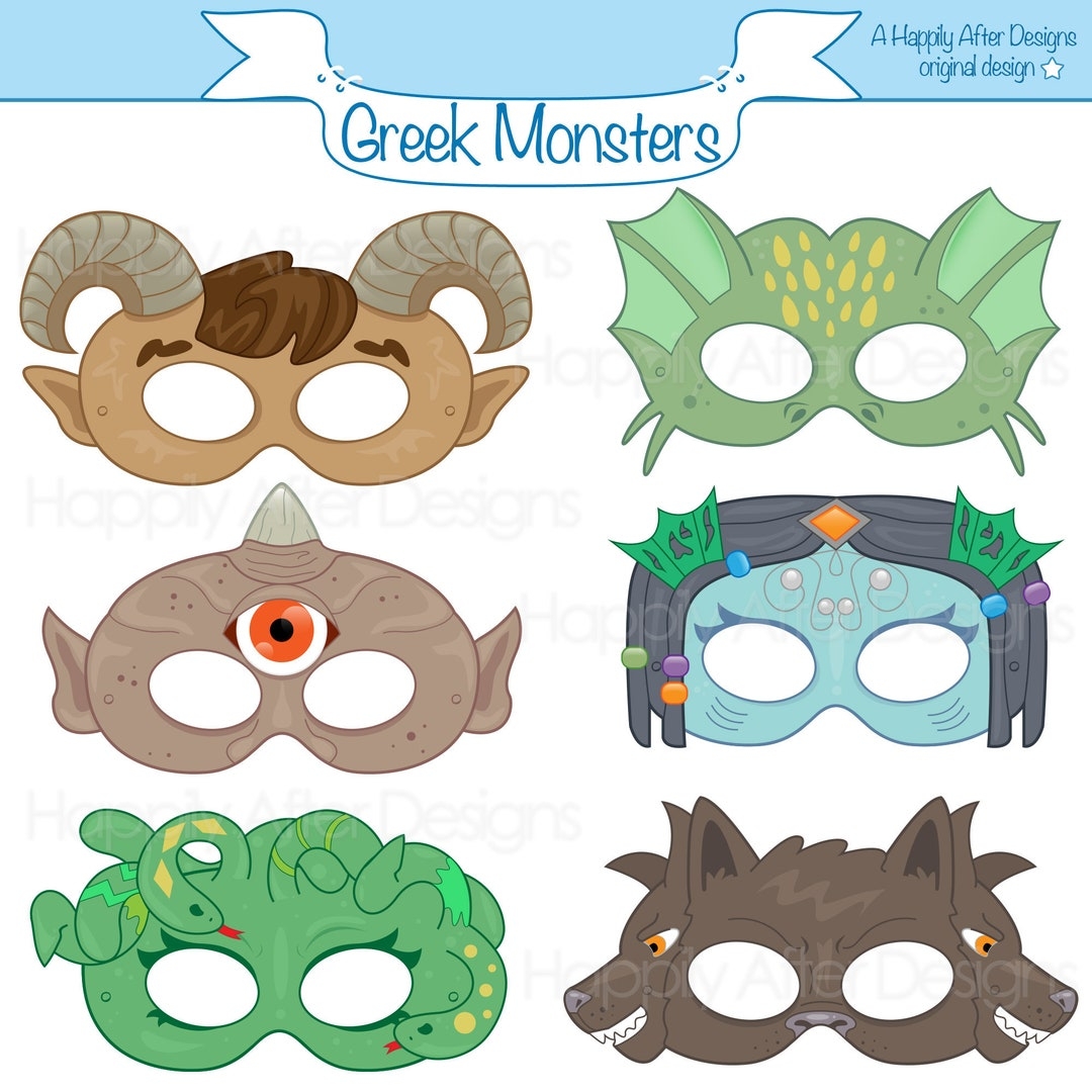 Greek Monsters Printable Masks Medusa Mask Siren Mask Cyclops Satyr Cerberus Monster Mask Mythology Hydra Dragon Printable Mask Etsy