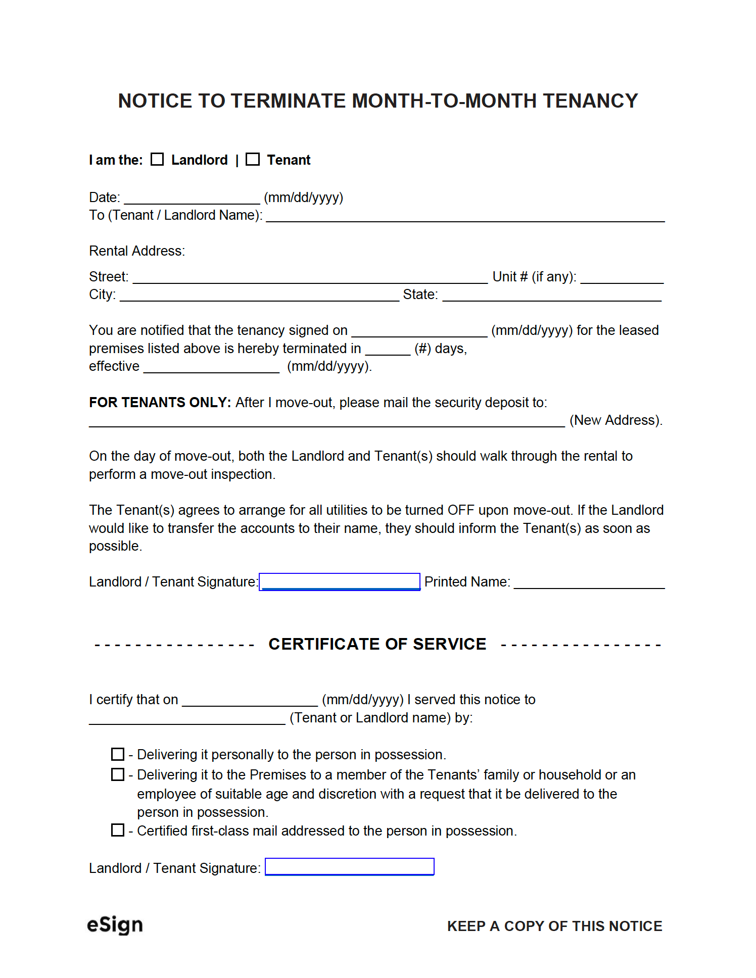 Free Lease Termination Letter Month to Month Tenancy 30 Day Notice PDF Word EForms