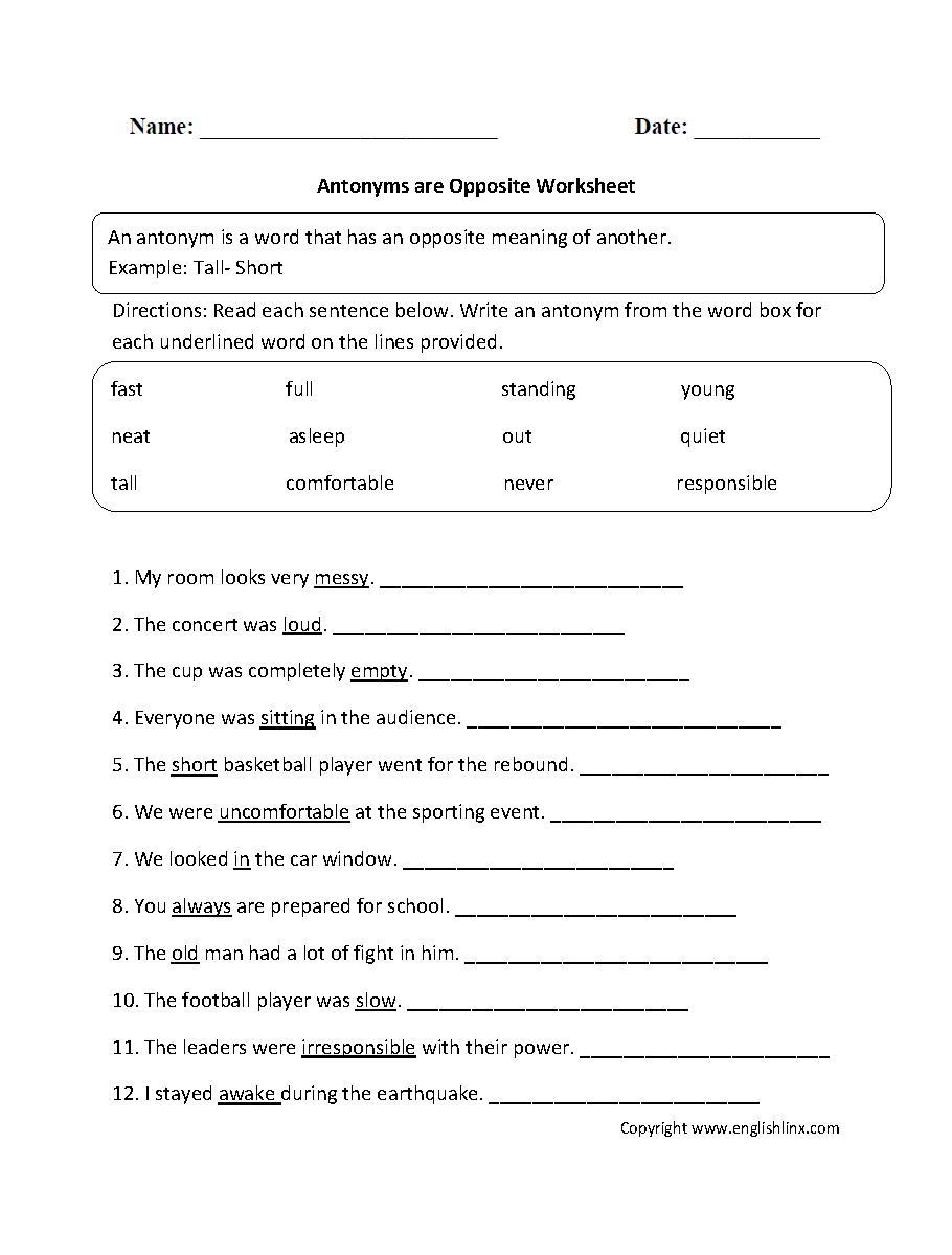 Free Printable Synonyms And Antonyms Worksheets