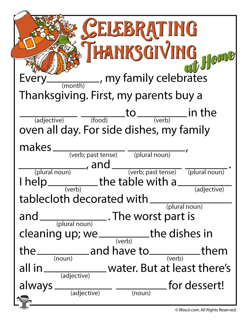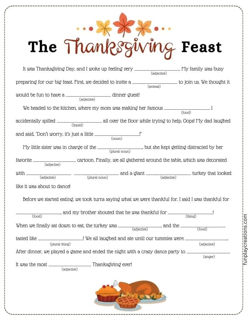 Not only are Free Printable Thanksgiving Mad Libs a blast to play, but they also help improve vocabulary, grammar, and creativity. Plus, they’re a great way to bond with family and friends as you work together to come up with the silliest stories imaginable.