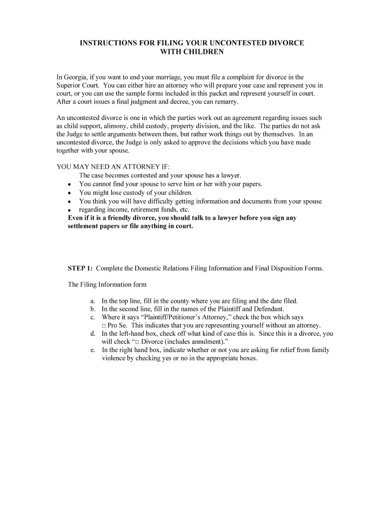 Georgia Uncontested Divorce Forms Fill Online Printable Fillable Blank PdfFiller