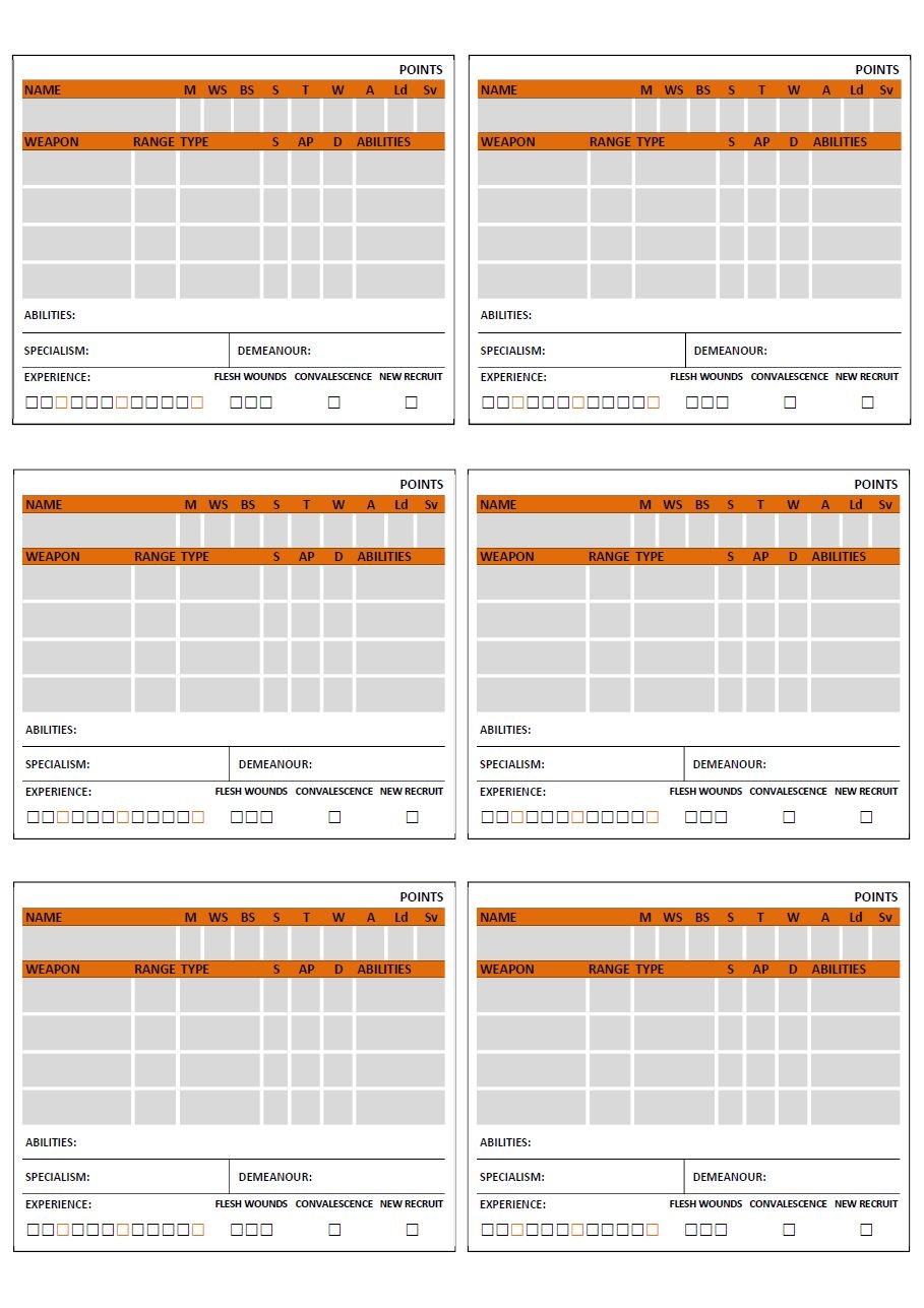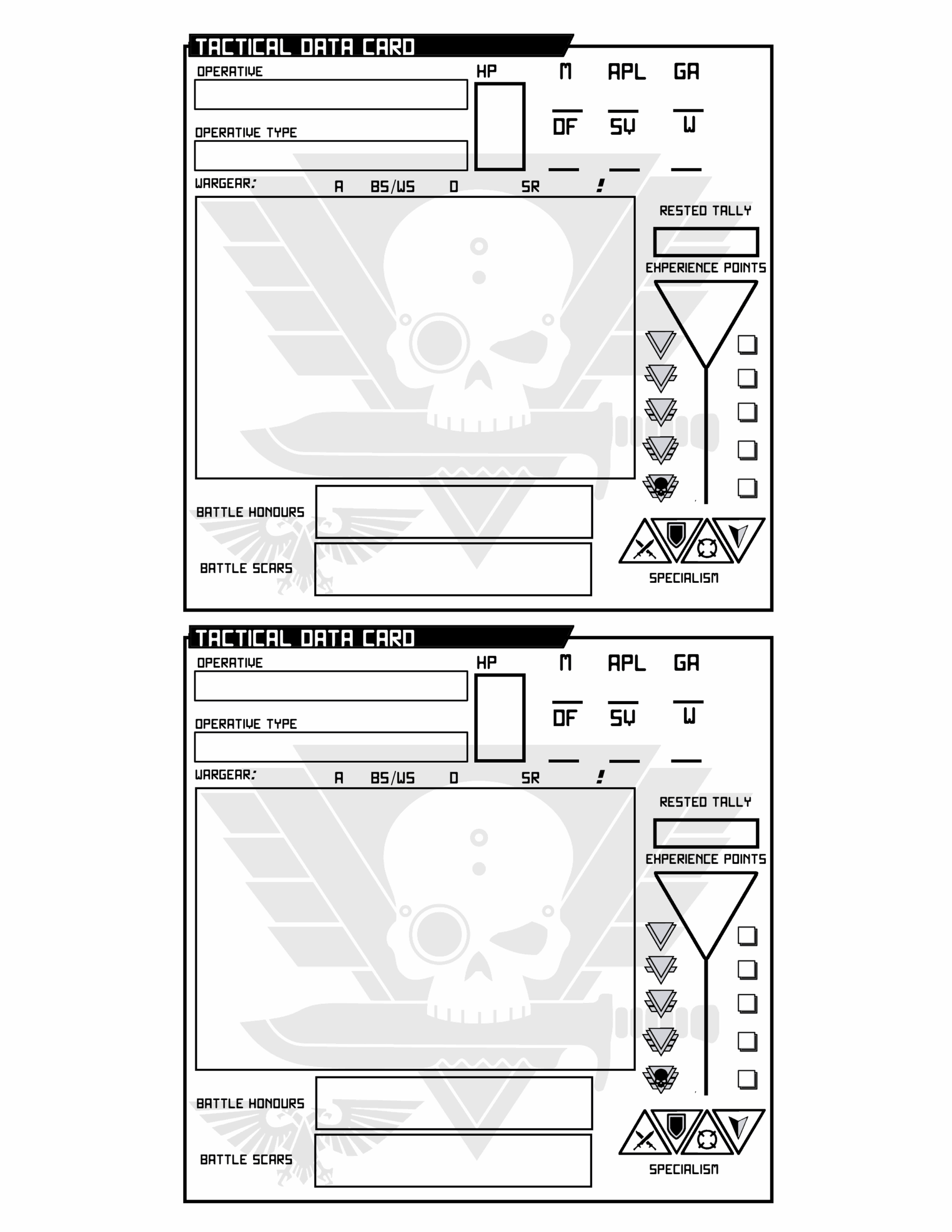 Simply download our printable template, fill in the blanks with your unit information, and print as many copies as you need. Whether you want to track your squad’s stats, equipment, or special abilities, these blank datacards have got you covered.