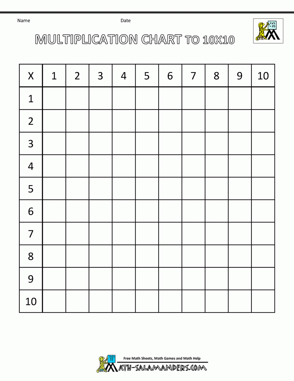 Blank Multiplication Chart Up To 10×10