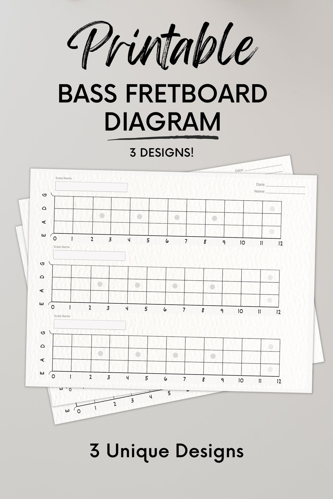 Printable Blank Bass Guitar Fretboard Chart Neck Diagram Teacher Student Music Scale Standard US Letter Play 4 String Instant Download PDF Etsy